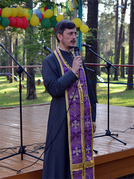 Отец Александр выступил перед ребятами с напутственным словом, пожелал им хорошо отдохнуть, набраться сил, ближе познакомиться друг с другом, узнать что-то новое из бесед о православии, истории и духовной культуре в стране и на Борисовской земле.
