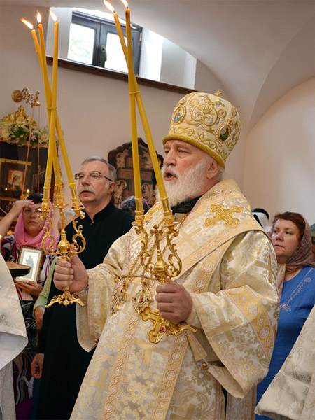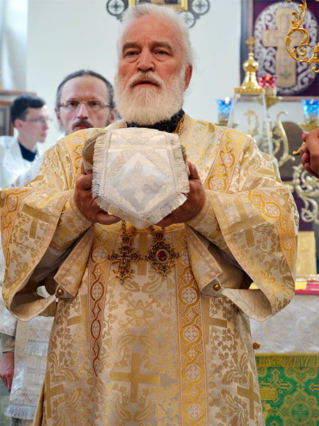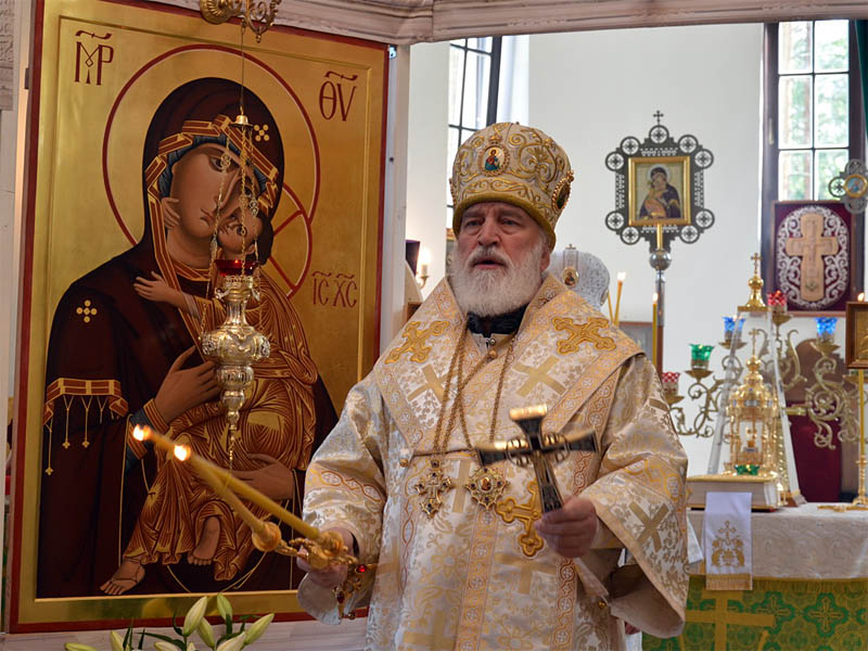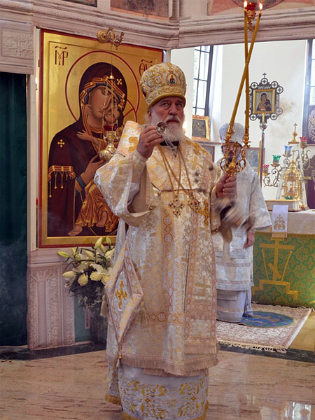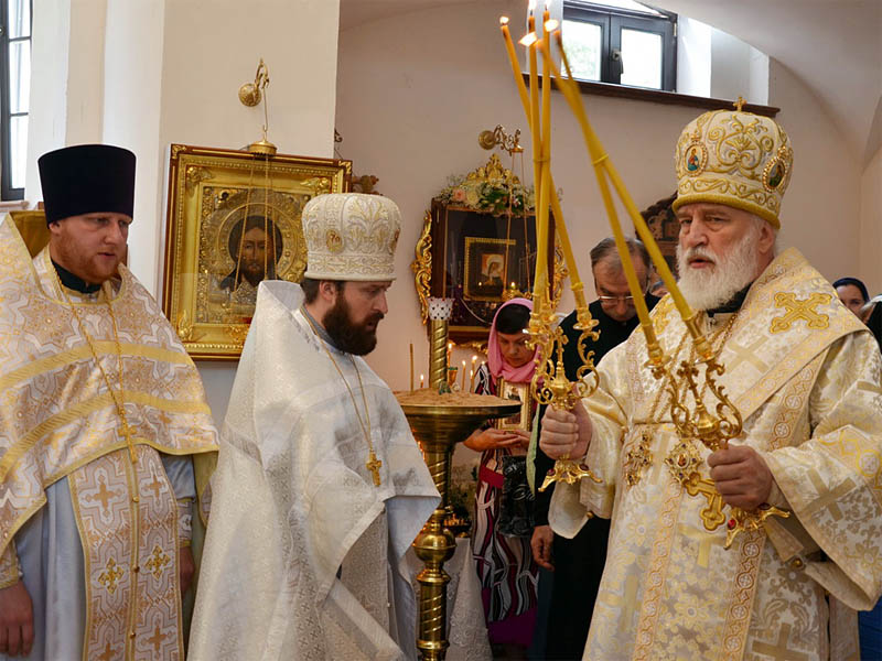 По окончании богослужения Патриарший Экзарх обратился к молящимся с проповедью, поздравив с днем памяти святой блаженной Ксении Петербургской.