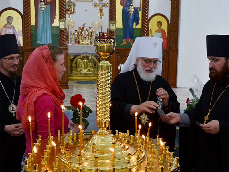 Тепло и радостно, с цветами и караваем встречали Владыку Павла прихожане Свято- Воскресенского кафедрального собора. Его Высокопреосвященство приветствовал почетный настоятель собора, митрофорный протоиерей Иоанн Мисеюк. Осмотрев недавно реставрированный собор и соборный храм в честь святого благоверного князя Александра Невского, Митрополит Павел поблагодарил духовенство и прихожан за благородную работу по возрождению старейшей борисовской святыни.