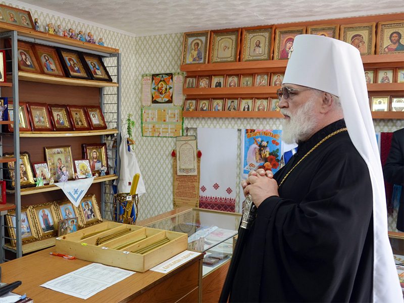 В завершение визита Митрополит Павел побывал в духовно-просветительском центре Борисовской центральной районной библиотеки имени И.Х. Колодеева. С его работой среди православного населения города и района Патриаршего Экзарха ознакомила директор библиотеки Галина Михайловна Слесаренко.