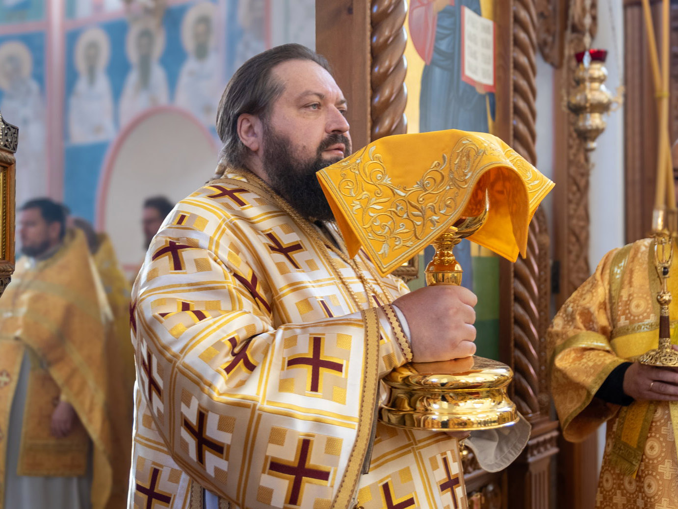 За богослужением были вознесены сугубые молитвенные прошения о восстановлении мира.
