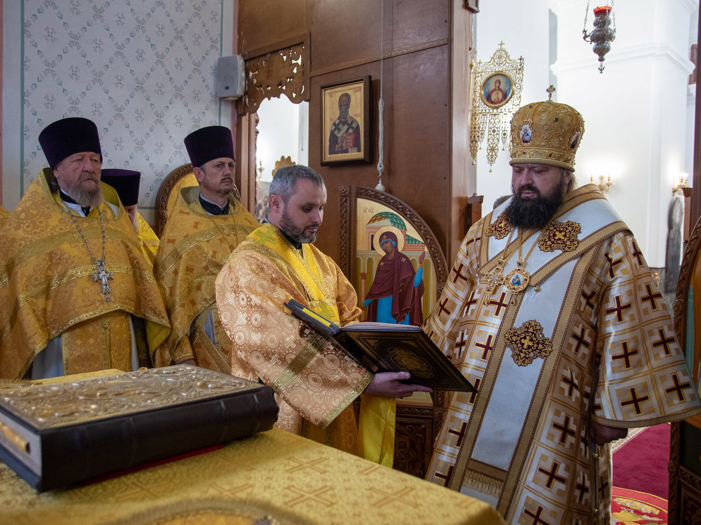 Затем владыка Амвросий обратился к молящимся со словом назидания, поздравил причастников с принятием Святых Христовых Таин и преподал всем архипастырское благословение.