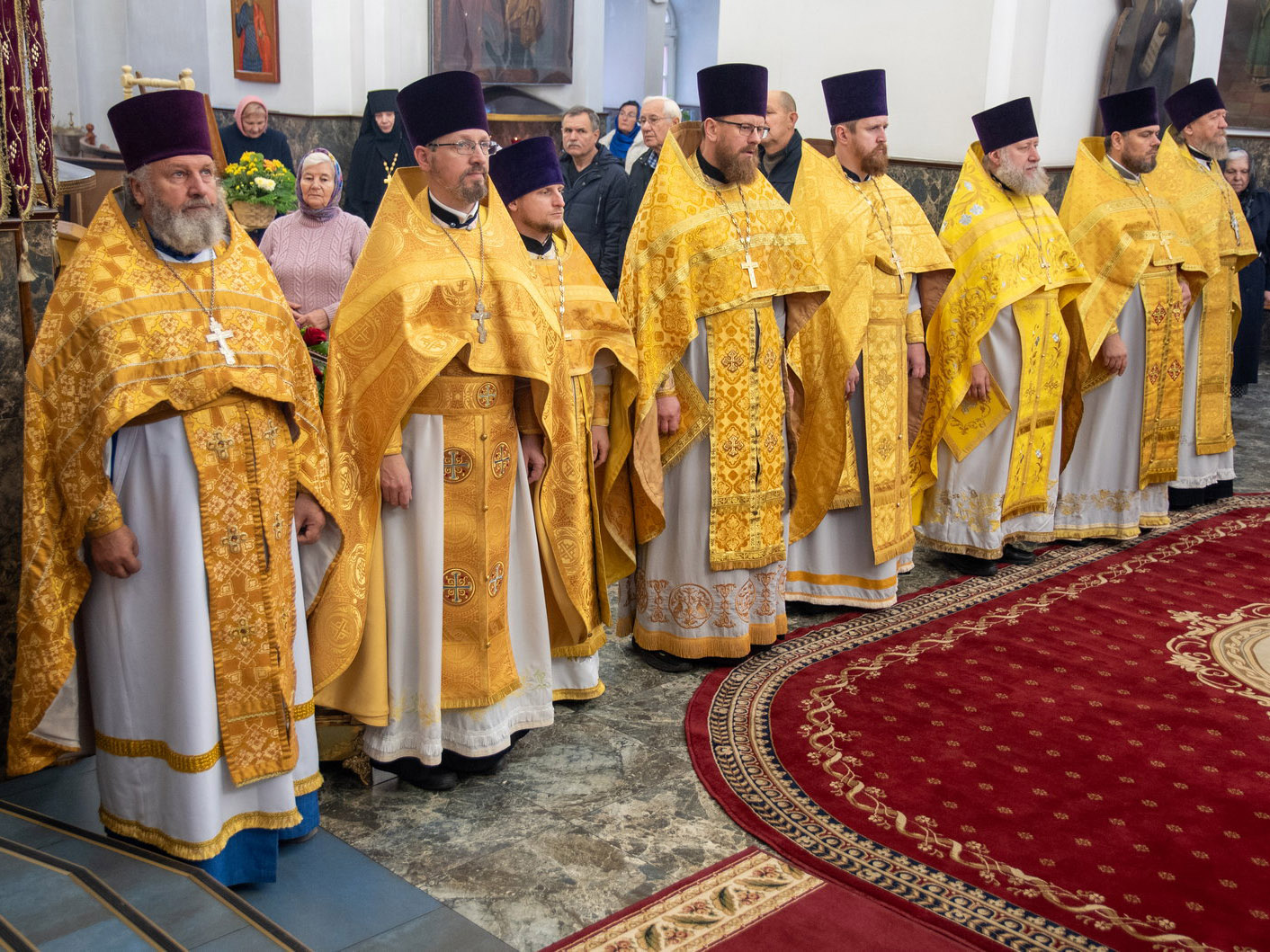 Его Преосвященству сослужили: секретари Борисовской епархии — протоиерей Александр Вербило и протоиерей Сергий Башкиров, благочинные церковных округов и многочисленное духовенство Борисовской епархии.