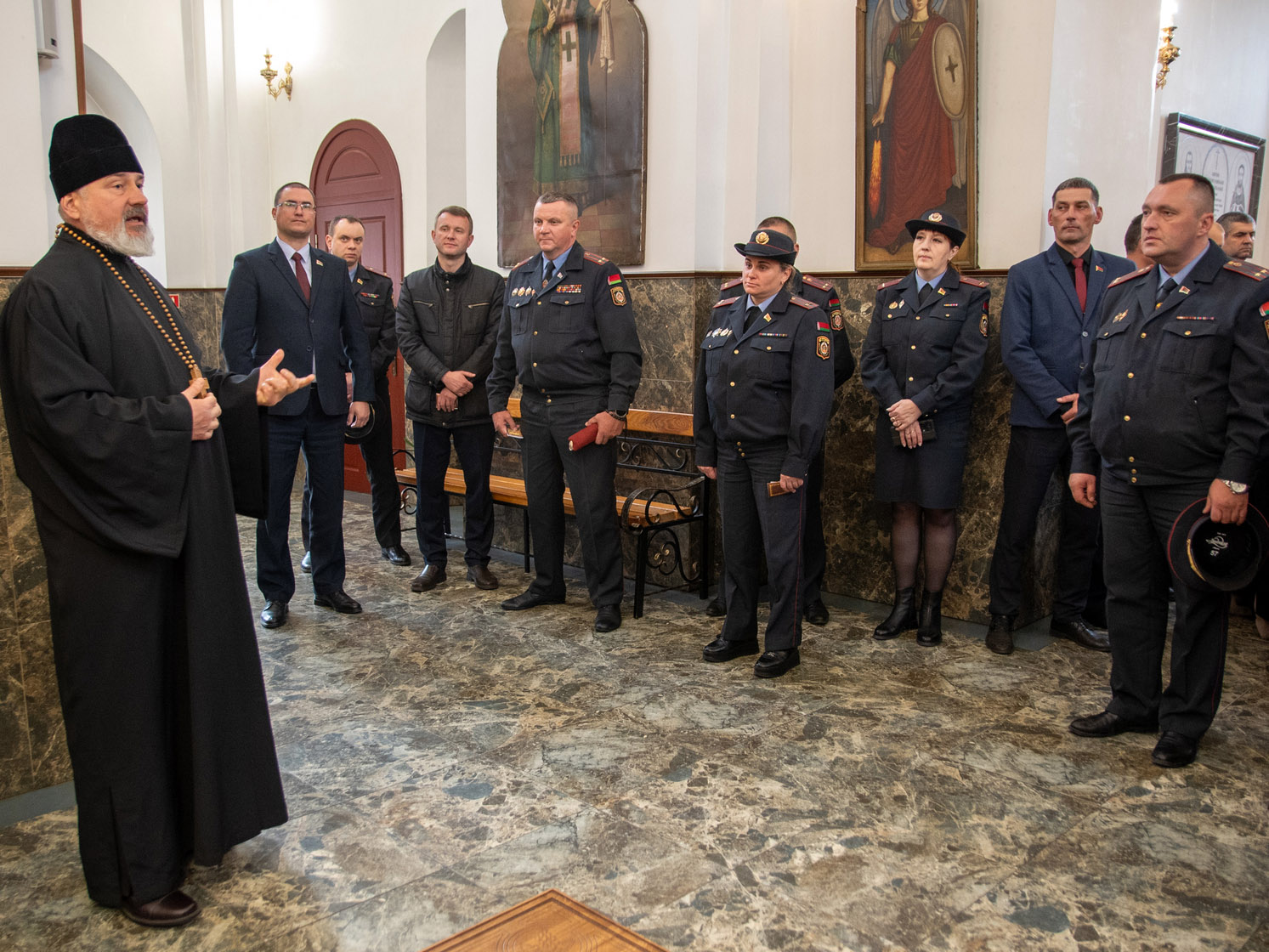 В начале визита начальник Борисовского РУВД, полковник милиции Дмитрий Подрез, от имени личного состава правоохранительных органов поздравил епископа Борисовского и Марьиногорского Амвросия с годовщиной его архиерейской хиротонии. В ответ владыка обратился к сотрудникам с архипастырским словом назидания, посвящённым их ратной службе. Он подчеркнул особую значимость их миссии — служения обществу и Отечеству как оплота стабильности и порядка в Республике Беларусь.