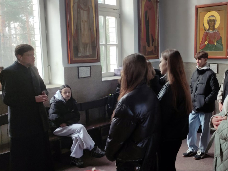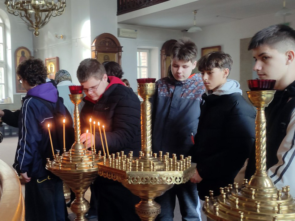 Протодиакон Михаил Сидоров рассказал ребятам об устройстве храма, иконах, иконостасе, значимость икон. Далее ребята ознакомились с проектами духовно-нравственного центра. Психолог Ирина Перова провела дискуссию на тему: "Современное понимание - это человечность". Ребята поставили свечи о здравии своих родных и близких.