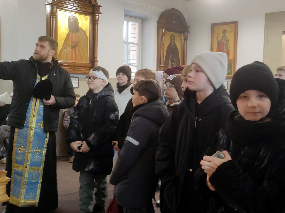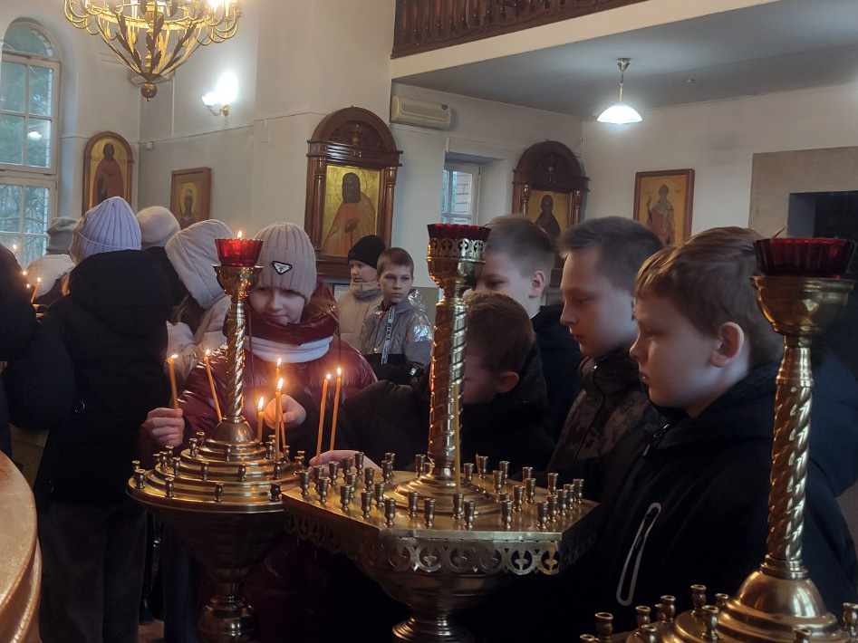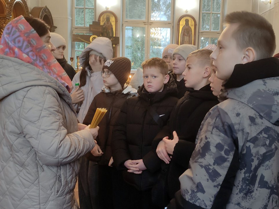 Ребята увидели, что находится в алтаре и что необходимо священнику для совершения службы. Отец Сергий показал ребятам напрестольное Евангелие и рассказал о нем. Педагог, Светлана Васильевна, рассказала о значении креста и молитвы в жизни православного человека. В завершении встречи ребята поставили свечи о здравии родных и близких.