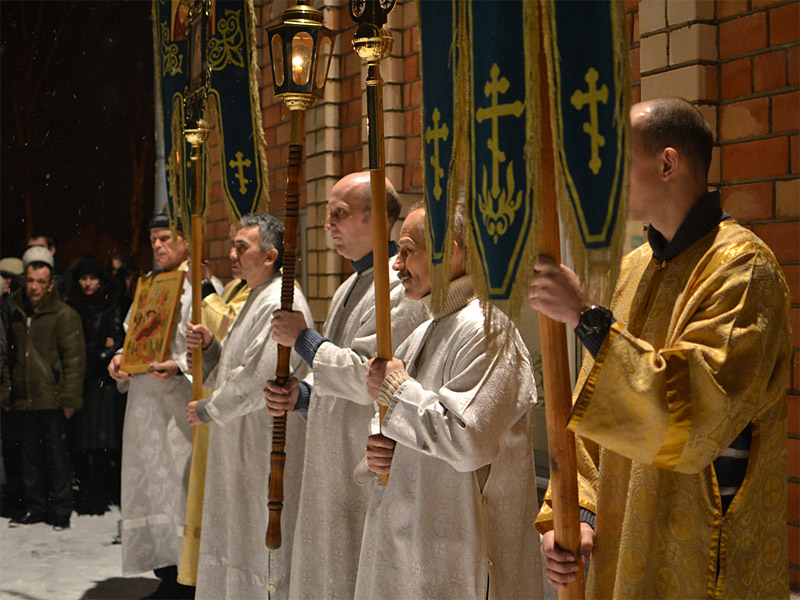 После литургии отец Александр зачитал прихожанам Рождественское послание Патриарха Московского и всея Руси Кирилла. Вокруг храма Рождества Христова был совершен крестный ход.