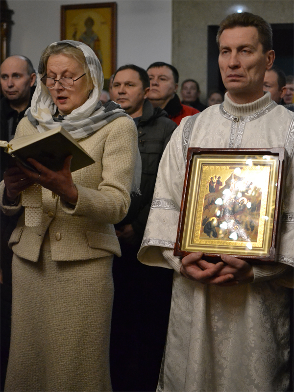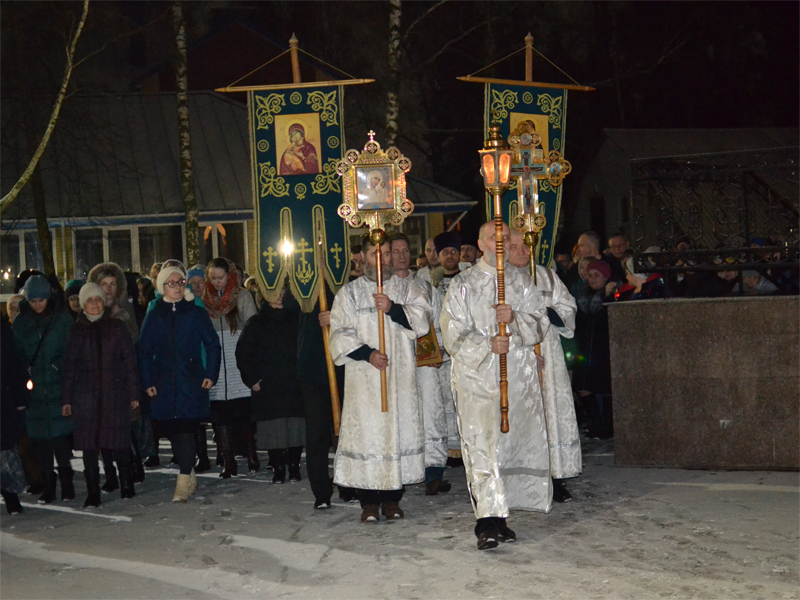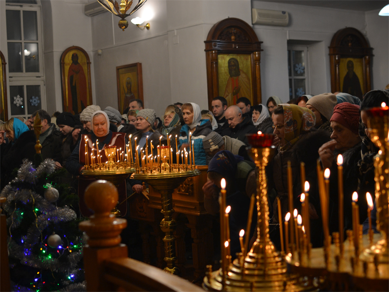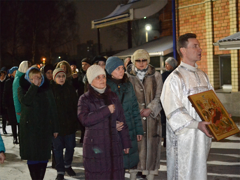 После литургии отец Сергий зачитал Рождественское послание Святейшего Патриарха Московского и всея Руси Кирилла. Затем вокруг храма был совершен крестный ход.