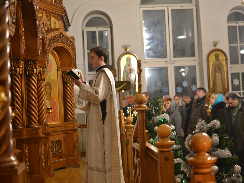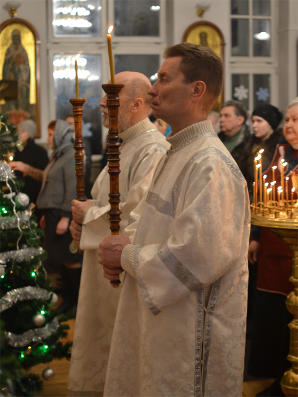 В ночь с 6 на 7 января, в праздник Рождества Христова, благочинный 1-го Борисовского церковного округа, настоятель прихода храма Рождества Христова протоиерей Александр Вербило в сослужении иерея Сергия Прокопчика и диакона Артемия Щербицкого совершил Божественную литургию.