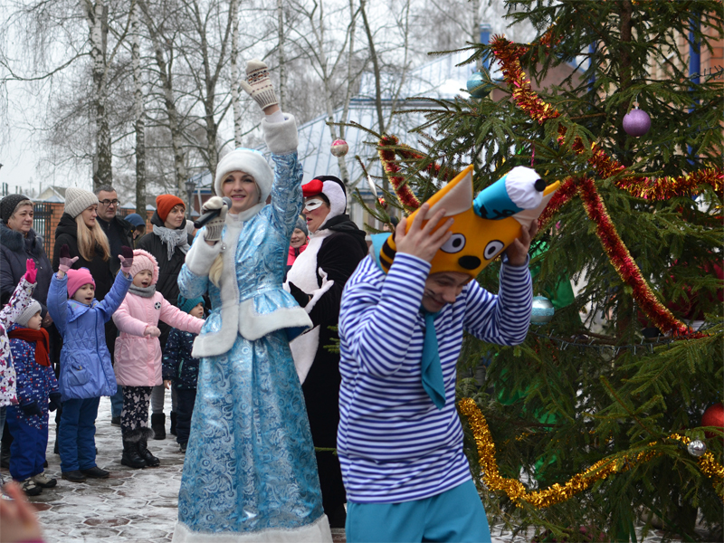 Вокруг елки собрались дети дошкольного и младшего школьного возраста и их родители. В гости к ним пришли Дед Мороз и Снегурочка, герои детских мультфильмов. Они вместе с детьми водили хороводы, пели песни, загадывали загадки. Всем было весело, радостно и счастливо.