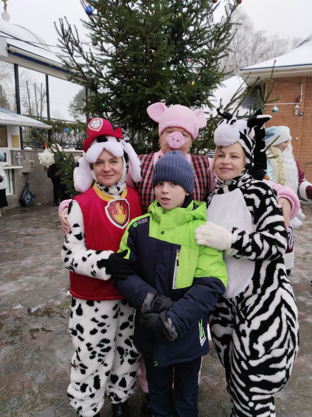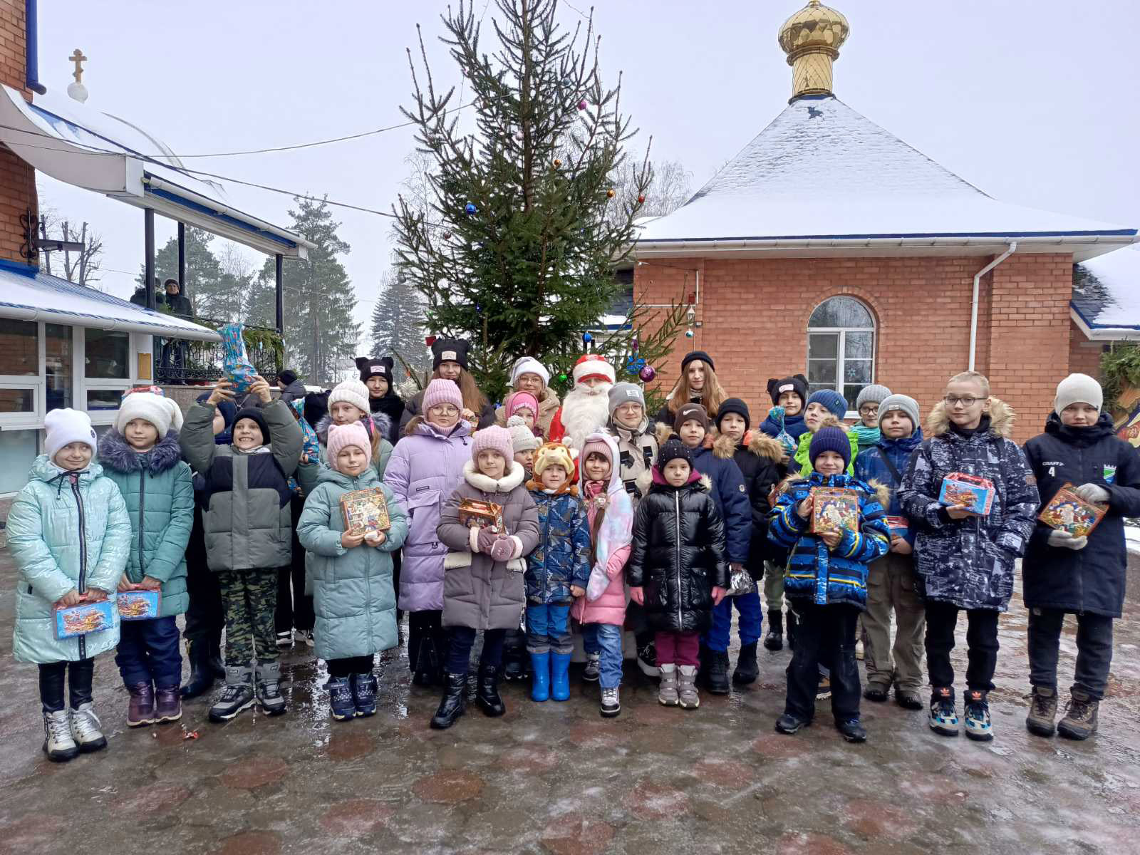 В рождественский праздник во дворе храма детей и родителей встречали Дед Мороз и Снегурочка, а также другие сказочные персонажи.