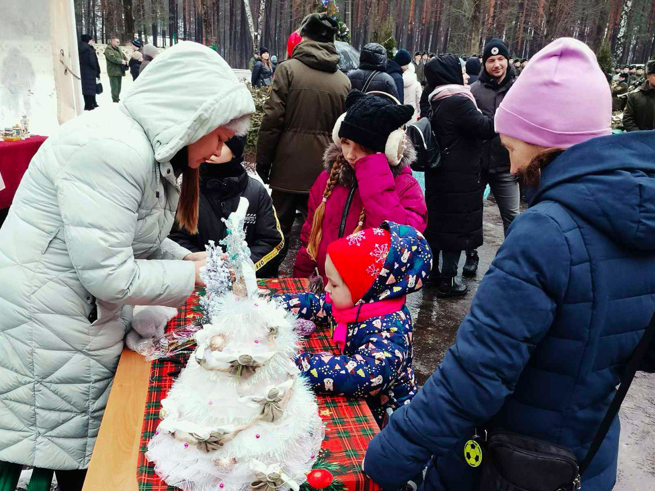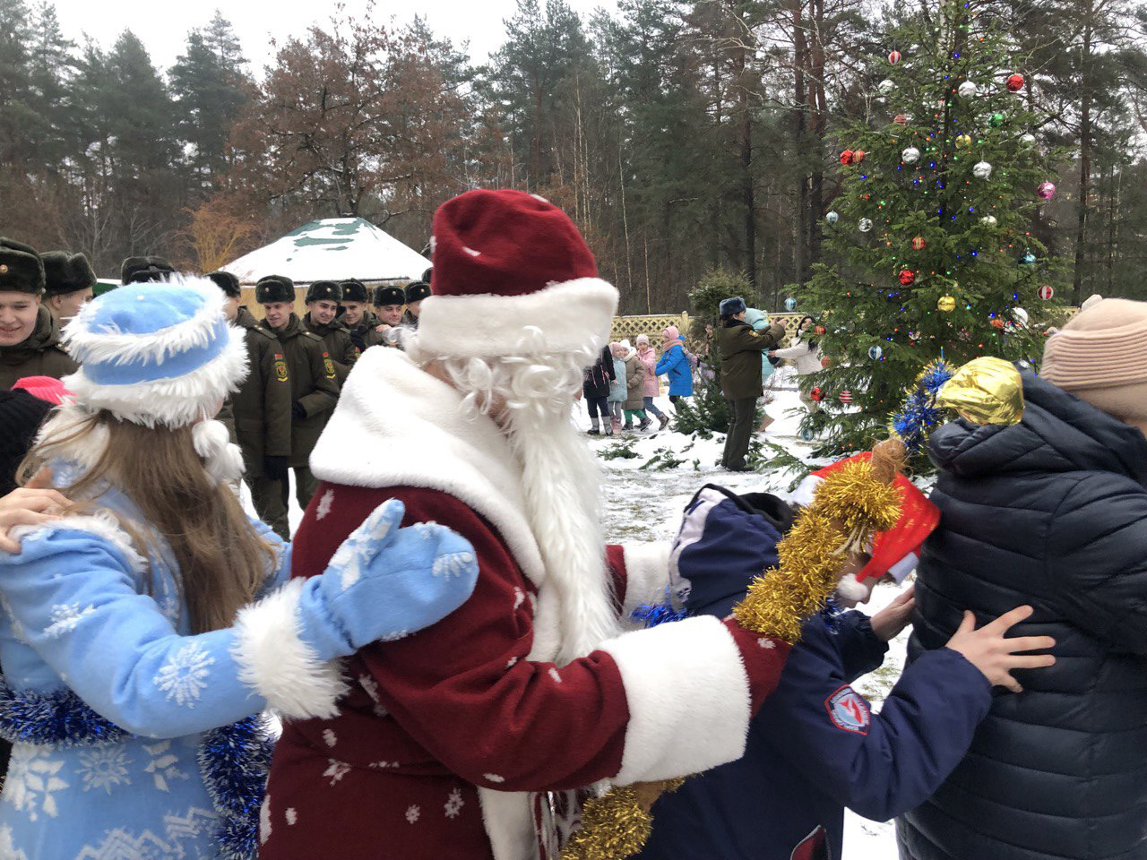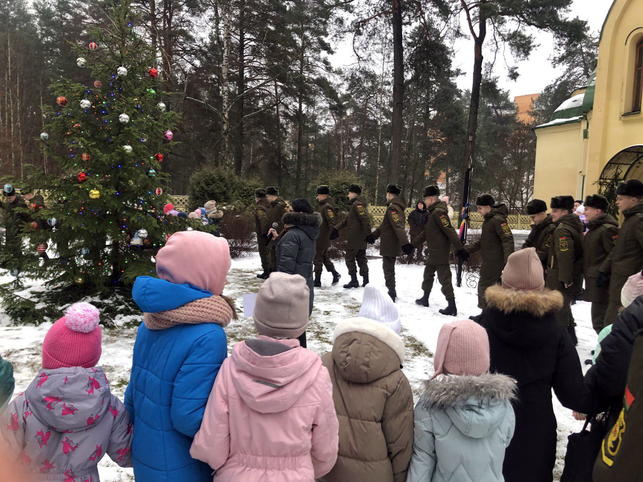 В день Рождества Христова по окончании Божественной литургии на территории храма Димитрия Донского г. Борисова состоялся Рождественский праздник, в котором приняли участие прихожане храма, жители микрорайона Печи, военнослужащие.