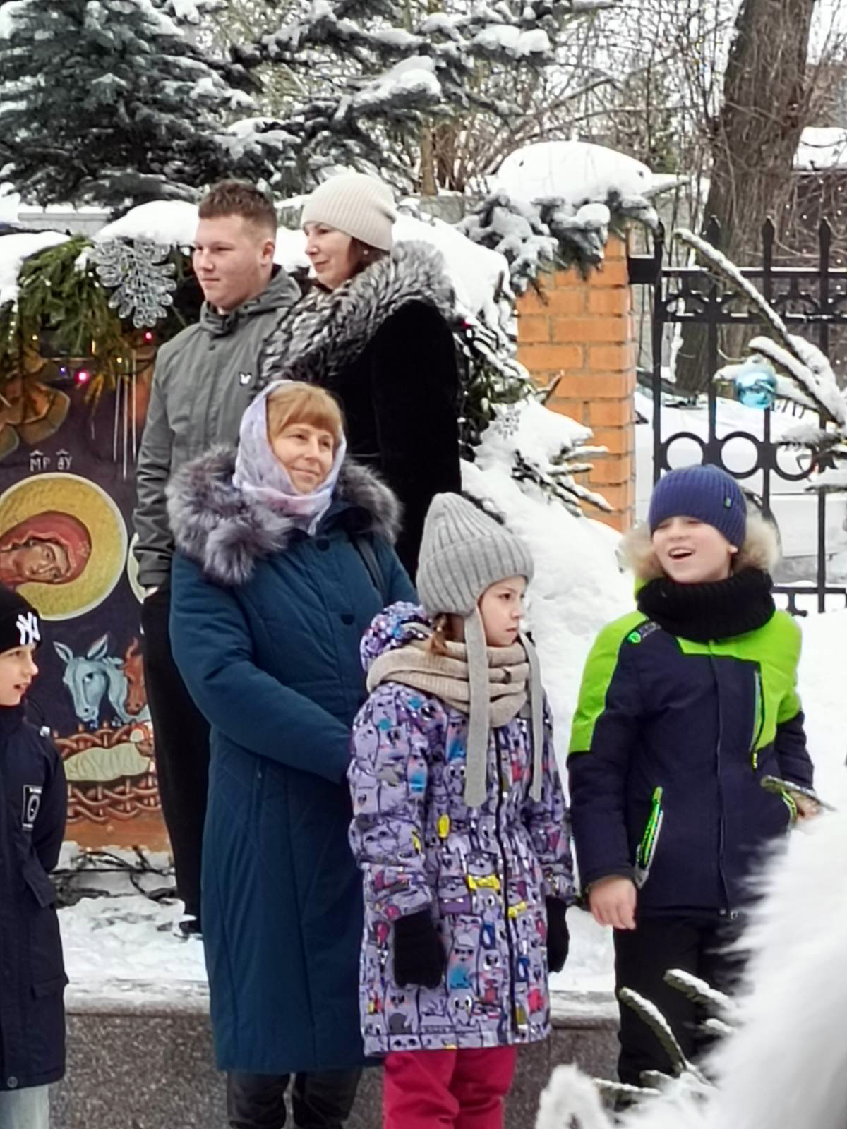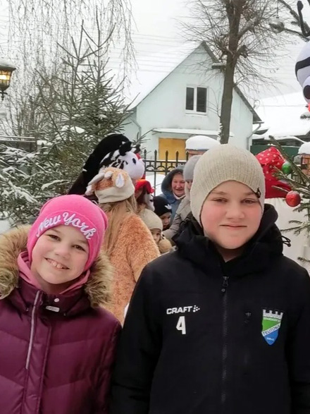 Провели праздник весело и задорно, а помогали в этом новогодние персонажи: Дед Мороз, Снегурочка, герои сказок и мультфильмов, педагоги и учащиеся ГУО «Средняя школа № 12», ГУДО «Центр творчества детей и молодежи». Дети пели и плясали, играли в игры, разгадывали загадки, выполняли задания Деда Мороза, за что получали сувениры и сладкие подарки. Привлекали к играм и взрослых. Всем было хорошо, и несмотря на морозец, веселились и праздновали Рождество Христово, угощались горячим чаем и сладостями.
