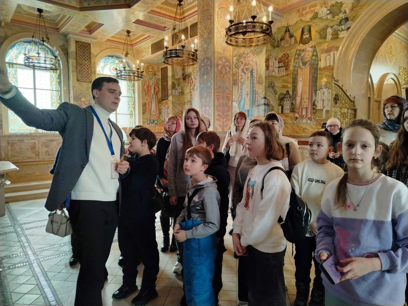 Ребята познакомились с основами православия, историей монашества, монастырскими мастерскими, подворьем и архитектурой святынь, узнали о жизни и подвиге святых, а также о мемориальном значении Храма Всех Святых для белорусского народа. Ребята посетили крипту храма-памятника и музей Памяти. Узнали о том, что в крипте церкви находится земля с полей всех великих исторических сражений в защиту белорусской земли. Здесь горит негасимая лампада, зажженная от огня из храма Гроба Господня в Иерусалиме.