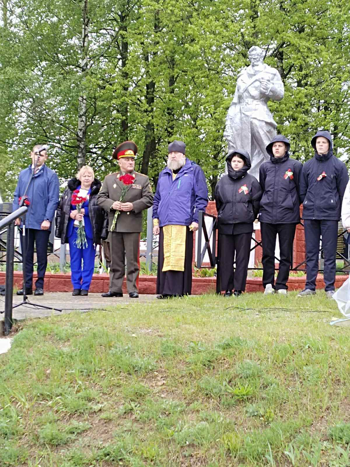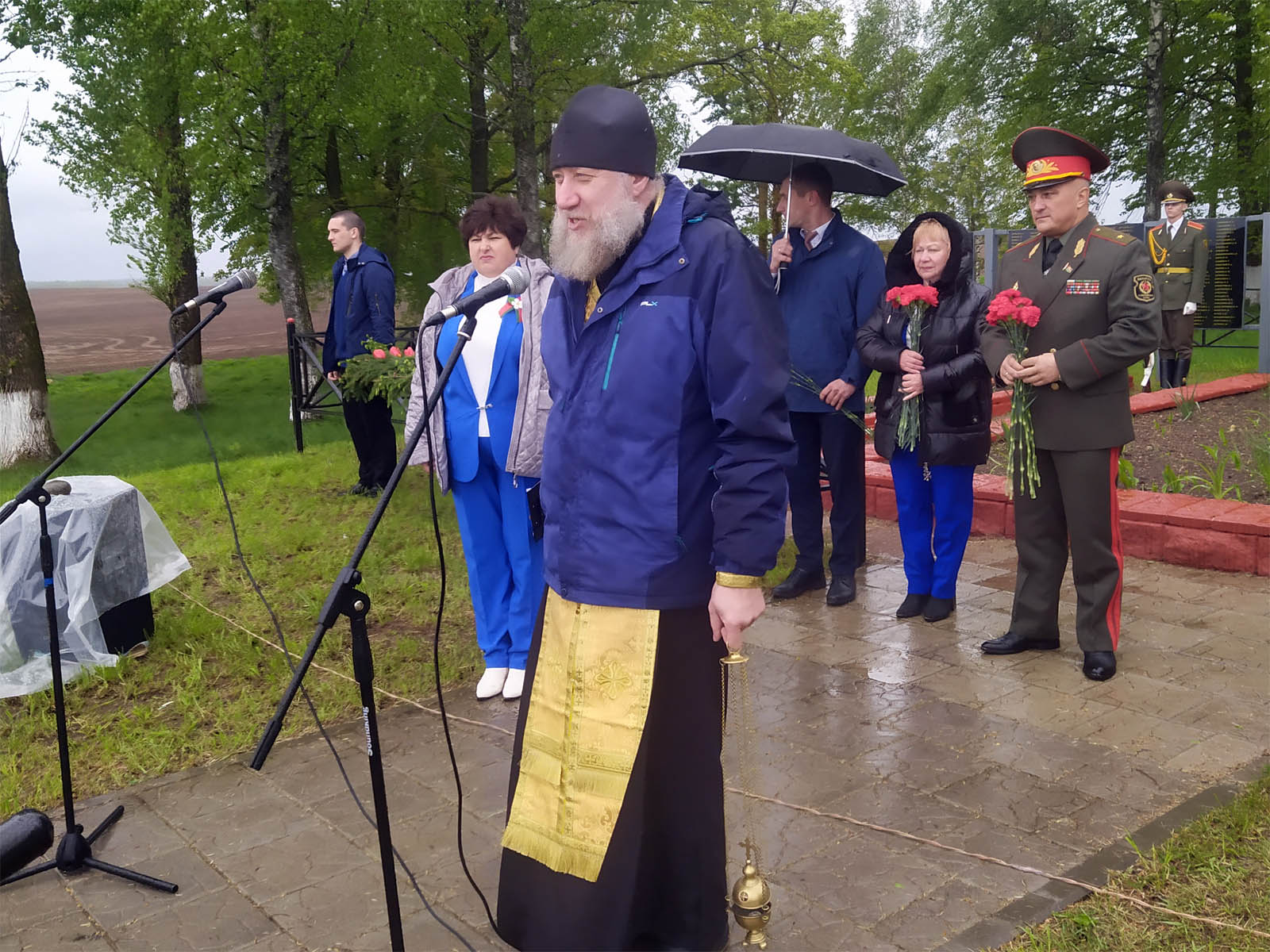 Настоятель прихода храма Воздвижения Креста Господня д. Загорье Борисовского района иерей Александр Лукьянович отслужил панихиду о погибших воинах, поздравил всех присутствующих с Днем Победы, произнёс пастырское слово и принял участие в возложении цветов к памятнику героям Великой Отечественной войны.