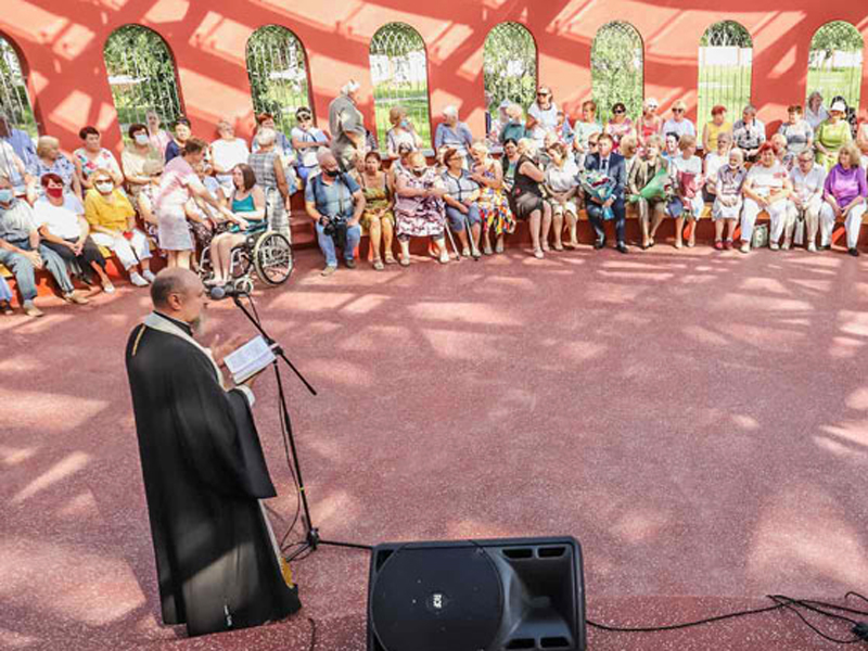 Также в мероприятии принял участие настоятель храма Святой Живоначальной Троицы г. Борисова протоиерей Георгий Тюхлов. Он совершил молебен и окропил амфитеатр и территорию санатория святой водой.
