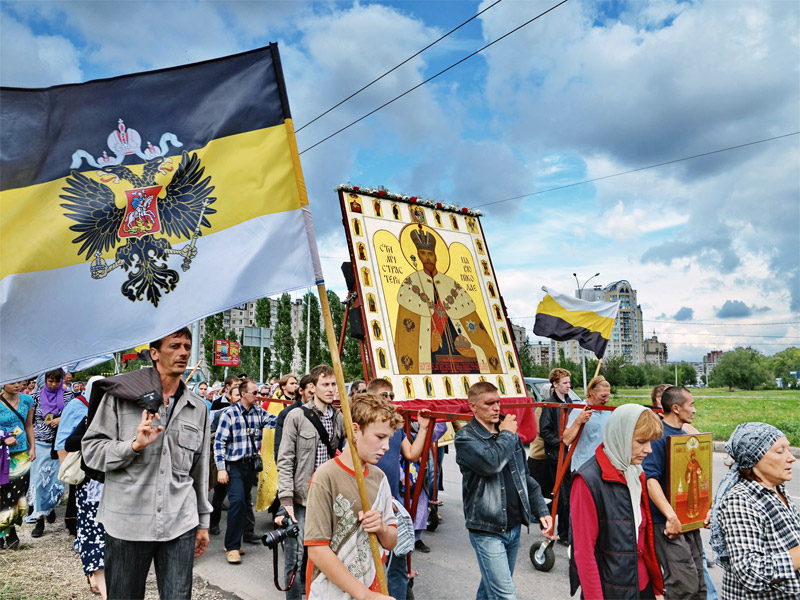 Еще в 2000-ом году патриарх Алексей II благословил крестный ход «За веру, Царя и Отечество от русской Голгофы (Екатеринбург) до Голгофы Господней (Иерусалим)». Через 2 года по благословению старца Свято-Троицкой Сергеевой Лавры архимандрита Германа (Чеснакова), по заказу родового казака и атамана Сергея Кришталя была написан образ Государя Николая II для участия в казачьем походе, покаянном крестном ходе «За веру, Царя и Отечество от русской Голгофы (Екатеринбург) до Голгофы Господней (Иерусалим)». Икона Благоверного Государя была освящена в храме святых апостолов Петра и Павла Свято-Сергиевой Лавры 17 июля 2003 к 85-летию гибели Царской семьи.