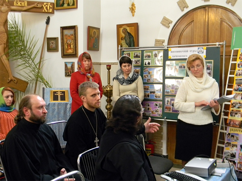С докладами о миссионерской деятельности, проводимой в Борисовском благочинии, выступили руководитель миссионерского отдела настоятель храма святого благоверного князя Дмитрия Донского иерей Сергий Башкиров, настоятель храма Живоначальной Троицы протоиерей Георгий Тюхлов, руководитель хора «Преображение» иерей Сергий Прокопчик, настоятель храма иконы Божией Матери «Всех скорбящих радость» протоиерей Феодор Чернеков, главный библиотекарь духовно-просветительского центра при Борисовской центральной районной библиотеке Елена Трусова, психолог Борисовского родильного дома Екатерина Русанова.