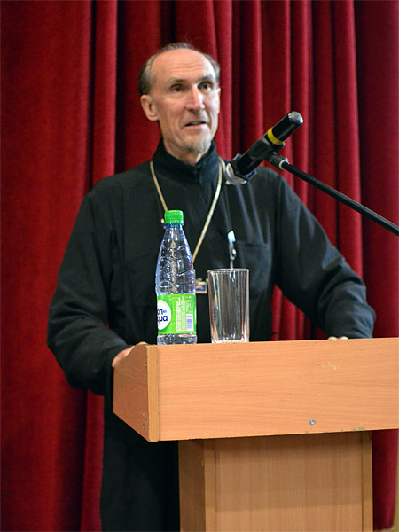 С докладом «Путь к преображению: святой великий князь Владимир в оценке видных русских историков и богословов» выступил профессор Минской Духовной Академии и Семинарии, заведующий кафедрой богословских дисциплин института Теологии БГУ, доктор богословия протоиерей Владимир Башкиров.