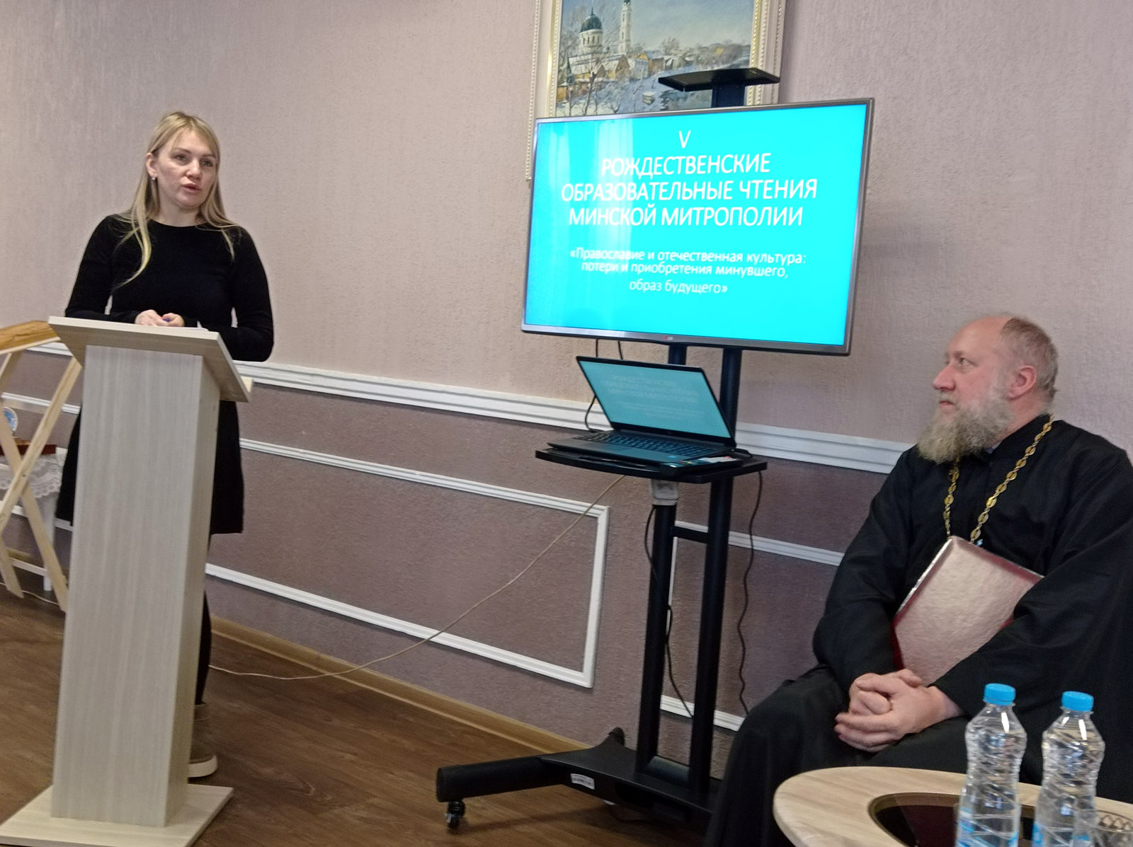 Далее выступила председатель комиссии по материнству и семье Борисовской епархии, психолог Борисовского роддома Русанова Екатерина Дмитриевна. Она рассказала об опыте межведомственных программ в сотрудничестве с БПЦ.