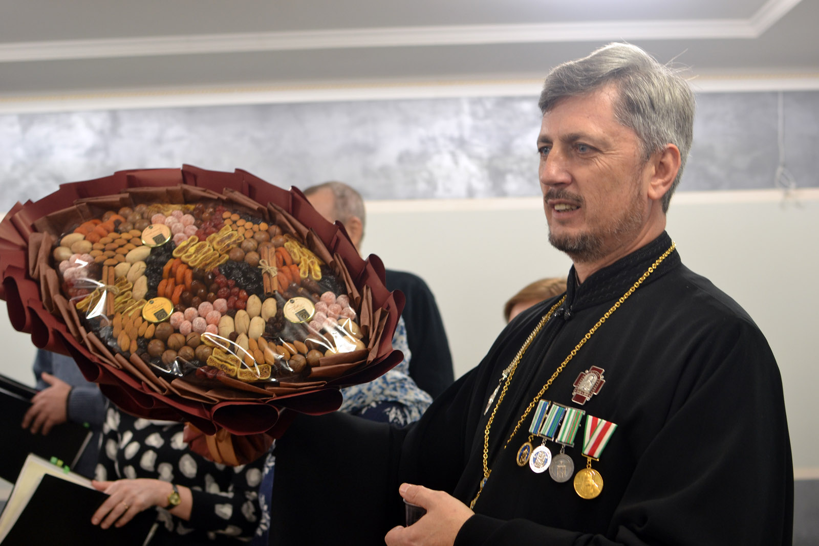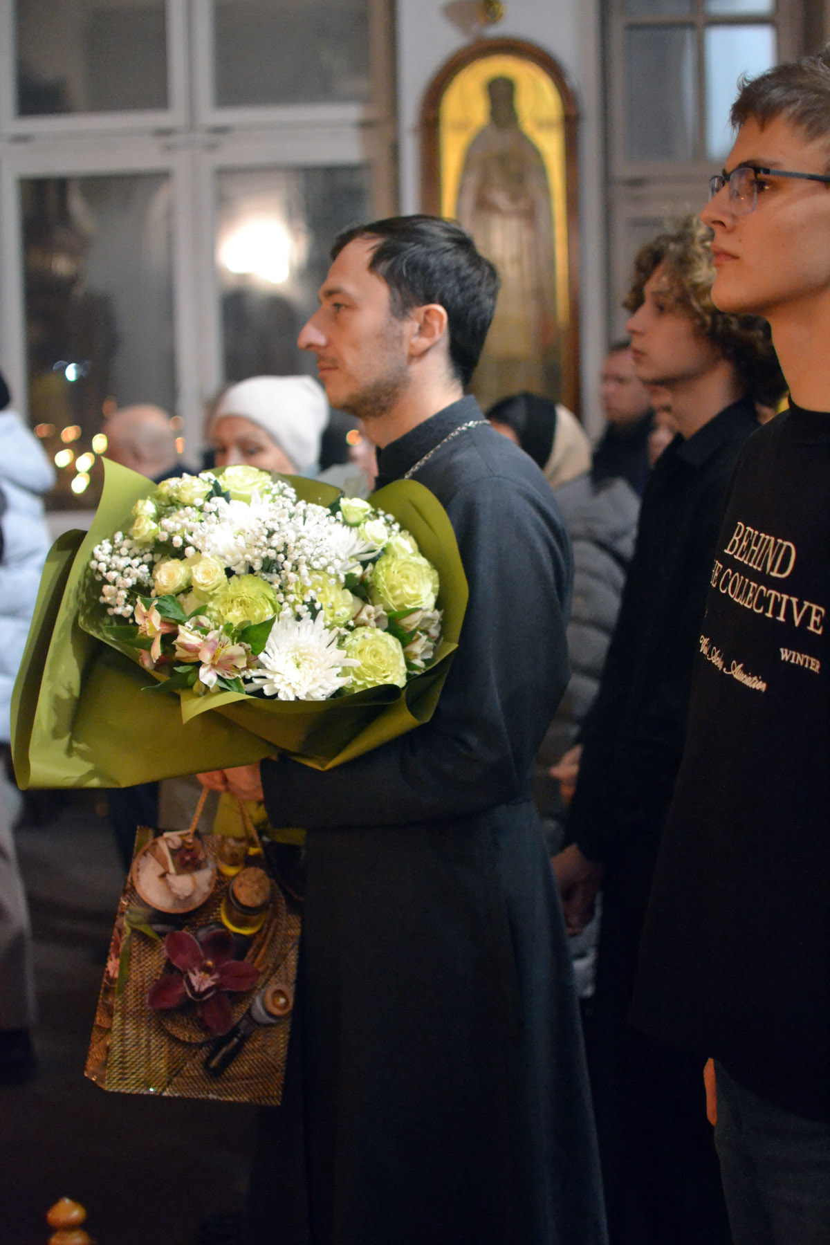 7 декабря секретарю Борисовского епархиального управления, благочинному Борисовского городского церковного округа, настоятелю прихода храма Рождества Христова г. Борисова протоиерею Александру Вербило исполнилось 50 лет. Накануне, 6 декабря отца Александра при Божественной литургии поздравил Владыка Амвросий с Днем Ангела. А на следующий день после вечернего богослужения состоялось чествование отца Александра в храме. От имени духовенства и прихожан храма его поздравил иерей Артемий Щербицкий.