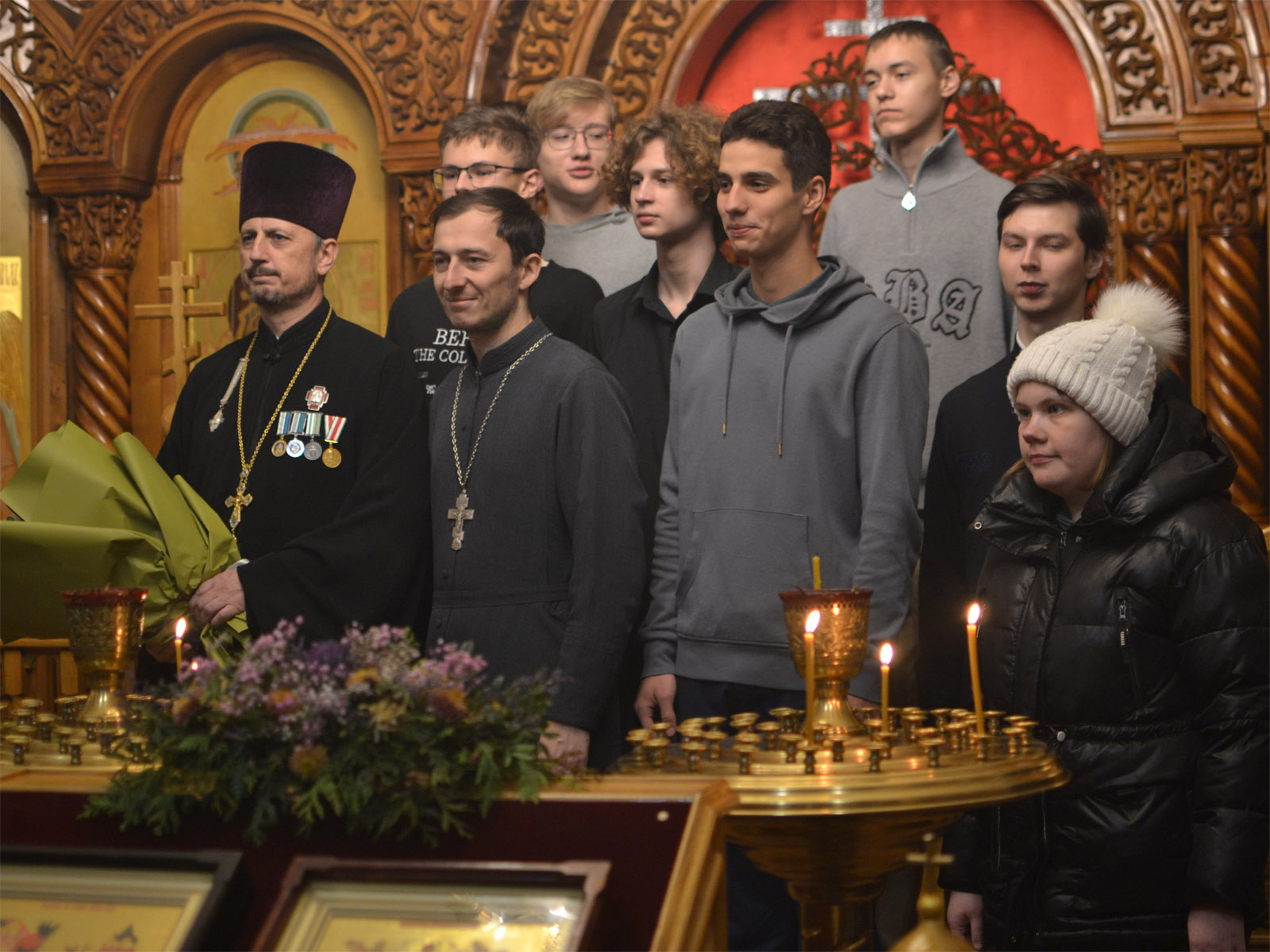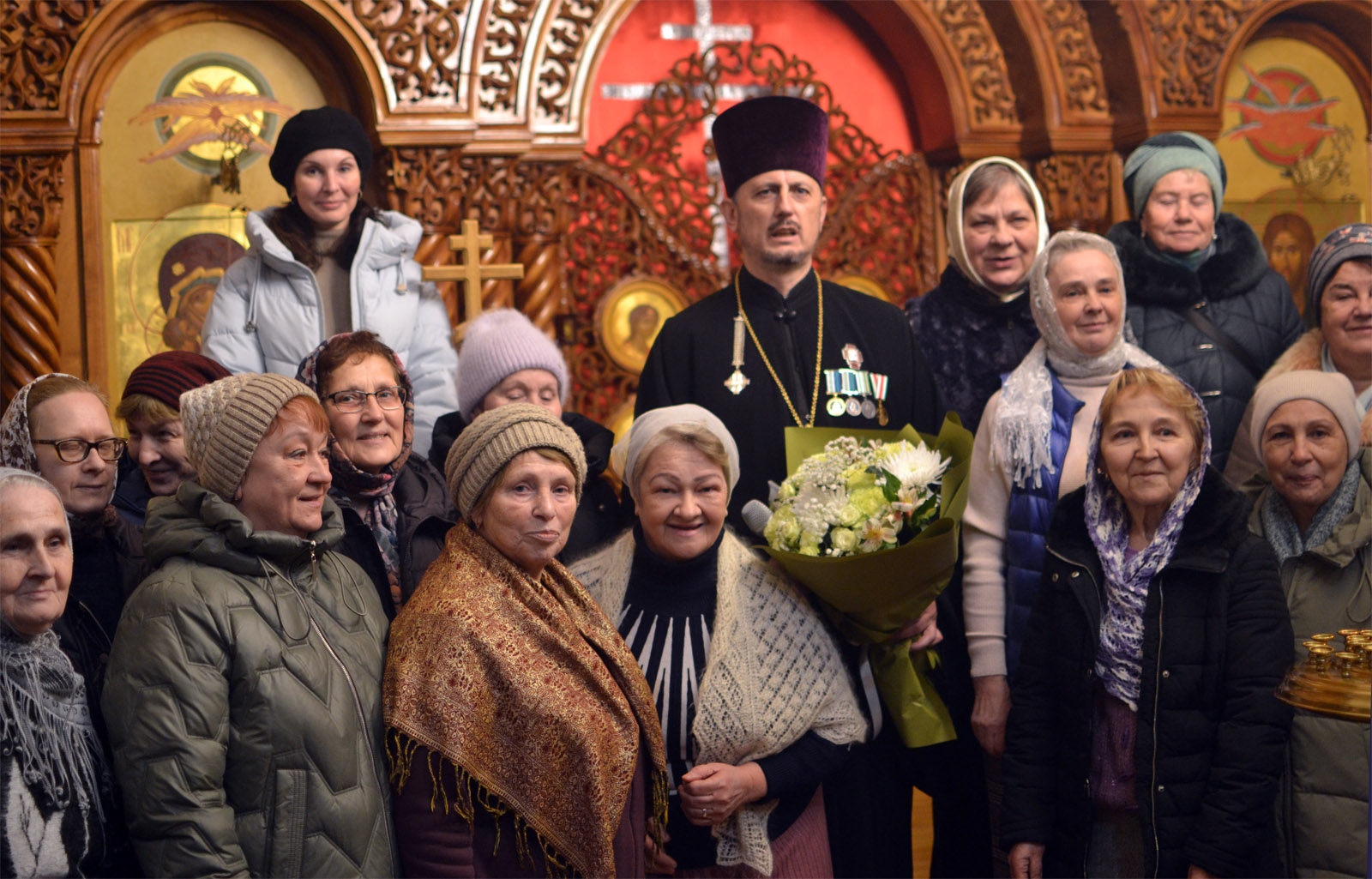 Затем были сделаны общие снимки присутствующих и отдельные с участием церковного хора, служителей и послушников церкви, прихожан. После этого в приходском доме храма было продолжено чествование. Отца Александра поздравляли прихожане, в его честь исполнялись песнопения, воспевались здравия, вручались юбилейные сувениры.