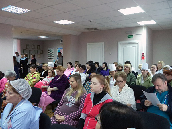 Екатерина Дмитриевна представила молодым матерям творческий коллектив. Выступили перед слушателями с поздравлениями и пожеланиями настоятель храма святого благоверного князя Димитрия Донского иерей Сергий Башкиров и заведующий родильным домом Шипуло Александр Валерьевич.