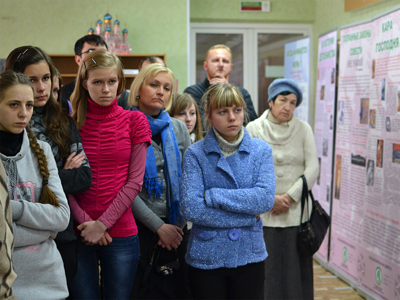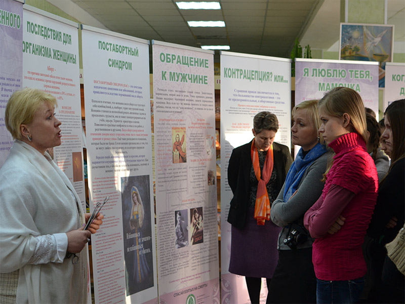 О медицинских, нравственных и духовных аспектах абортов и их последствий рассказали заведующая отделением повышения квалификации медицинского колледжа Светлана Фоминична Мозгунова и психолог Борисовского родильного дома Екатерина Дмитриевна Русанова. Наглядным дополнением к их рассказу явились сами экспонаты выставки.