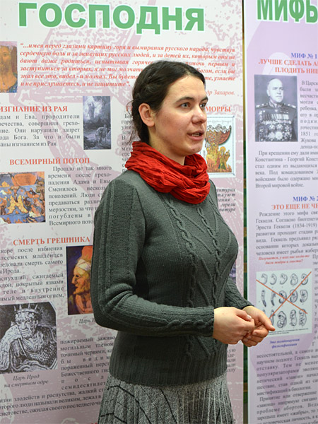 Весь ход мастер-класса, который проводился по этой проблеме, был посвящен именно этой теме. Своего рода экскурсию по выставке провела ассистент руководителя Центра защиты материнства и семейных ценностей Белорусской Православной Церкви Романчикова Марина Николаевна.
