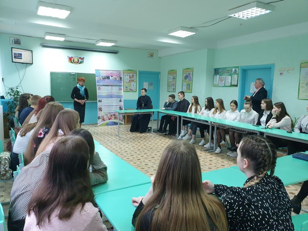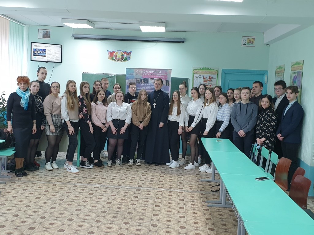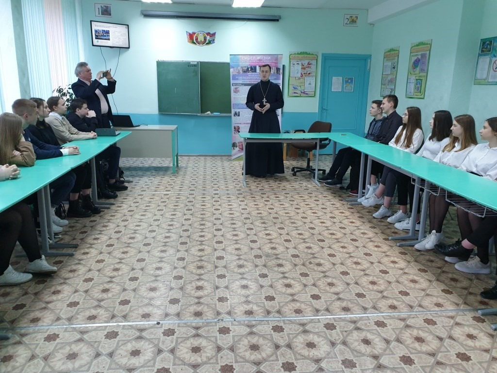 8 апреля в ГУО «Средняя школа № 24 г. Борисова» в рамках информационно-образовательного проекта «Школа Активного Гражданина» состоялась встреча клирика храма Рождества Христова г. Борисова иерея Артемия Щербицкого с учащимися 10-х классов.