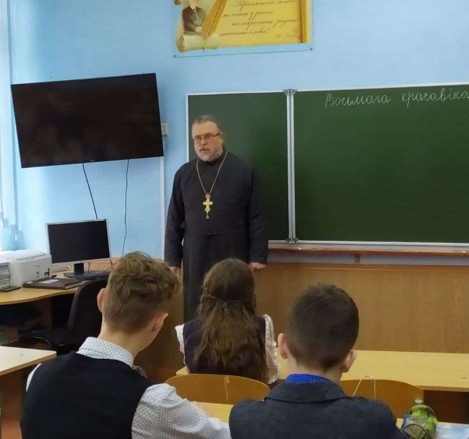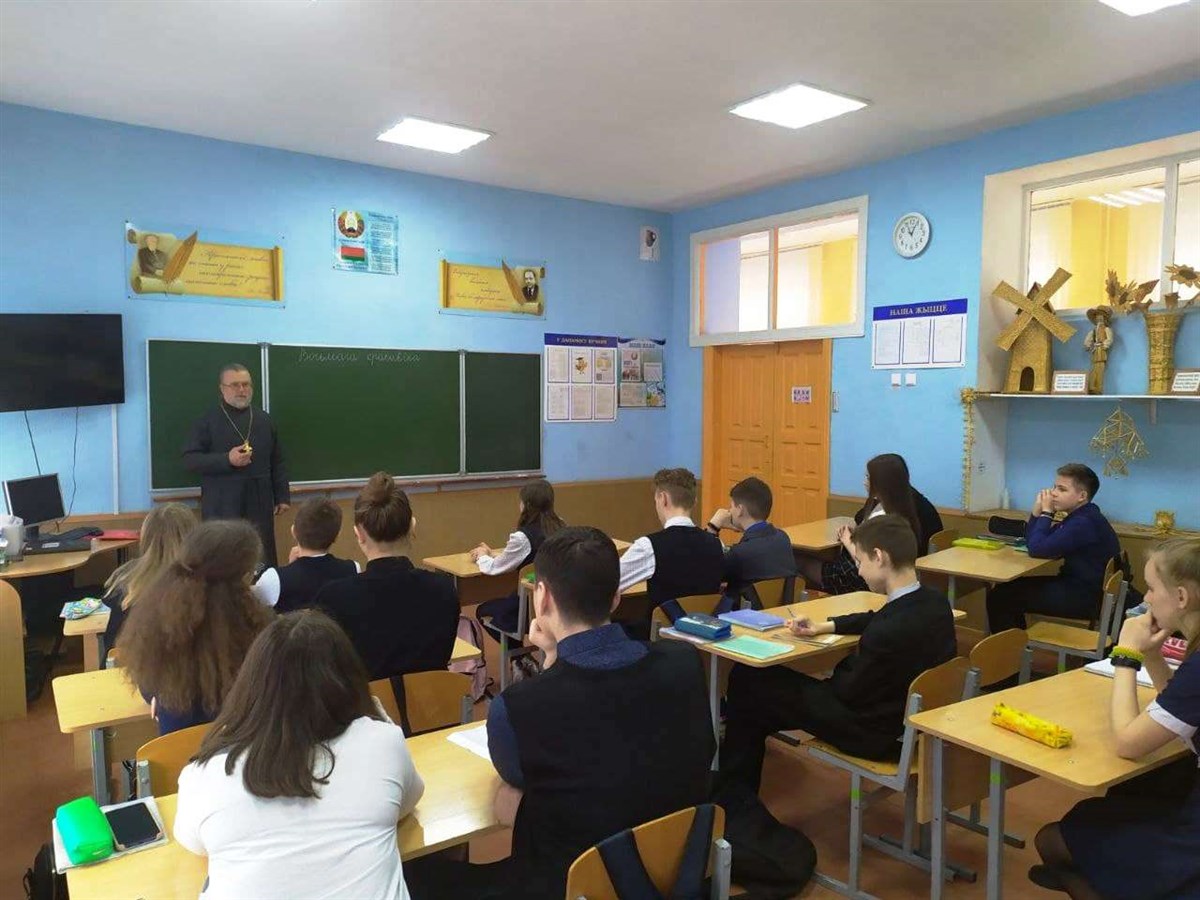 8 апреля В ГУО «Лошницкая гимназия Борисовского района» в рамках информационно-образовательного проекта «ШАГ» прошла встреча учащихся 8-11 классов с настоятелем храма святого Архангела Михаила аг. Лошница протоиереем Виктором Гулевичем.