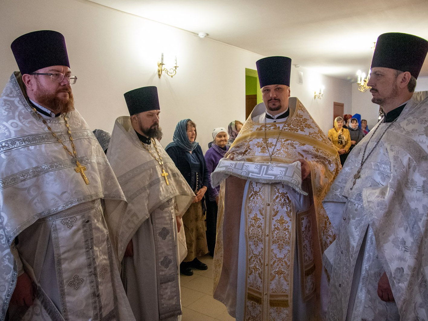 Предстоятелю Белорусской Православной Церкви сослужили: секретарь Борисовской епархии, благочинный I Борисовского церковного округа, настоятель храма Рождества Христова города Борисова протоиерей Александр Вербило; благочинный Смолевичского церковного округа, настоятель прихода храма Покрова Пресвятой Богородицы аг. Слобода иерей Иоанн Ясюкевич; настоятель прихода храма Минской иконы Божией Матери г. Смолевичи иерей Никодим Пашков; настоятель прихода храма Введения во храм Пресвятой Богородицы пос. Усяж иерей Димитрий Борисов.