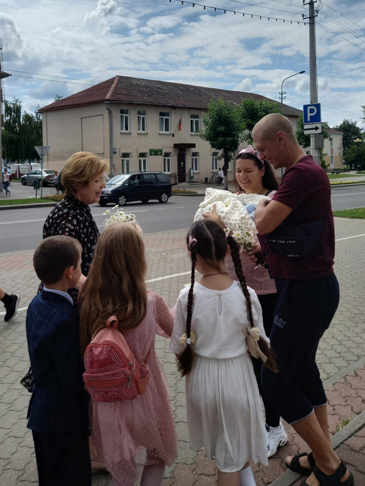 Юные волонтёры движения «Воскресение» Борисовского благочиния во главе с председателем комиссии по материнству и семье Русановой Е. Д. посетили ЗАГС Борисовского районного исполнительного комитета, чтобы присутствовать на церемонии бракосочетания молодоженов. Они поздравили молодоженов и гостей церемонии с праздником святых Петра и Февронии и с Днем семьи, любви и верности. Вручая молодым иконы святого семейства, Екатерина Дмитриевна отметила, что их житие являет нам пример чистоты, святости, красоты семейной жизни и счастья от общения двух любящих сердец. Они — покровители любви и семейного очага. Также жениху был вручен конверт с информационными листовками о подготовке к зачатию их первенца, а невесте на руку был повязан браслет из ромашек, изготовленный волонтёрами, как символ крепких семейных уз. Ромашка является символом Дня семьи, любви и верности. Издавна этот распространенный полевой цветок считался знаком любви и примирения. Только крепкая христианская семья со своими благочестивыми традициями способна противостоять проблеме прерывания новой жизни (абортам). «Именно дети вызывают в людских сердцах прозрение, именно ребёнок может стать вашей радостью и открыть вам ваш путь ко спасению», ― подытожила Екатерина Дмитриевна.