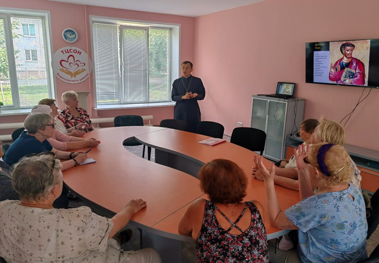 8 августа в отделении дневного пребывания для граждан пожилого возраста ГУ «ТЦСОН Борисовского района» состоялась встреча с участием представителя миссионерского отдела Борисовской епархии клириком храма Рождества Христова города Борисова иереем Артемием Щербицким. Тема встречи: "Книга Деяний святых апостолов".