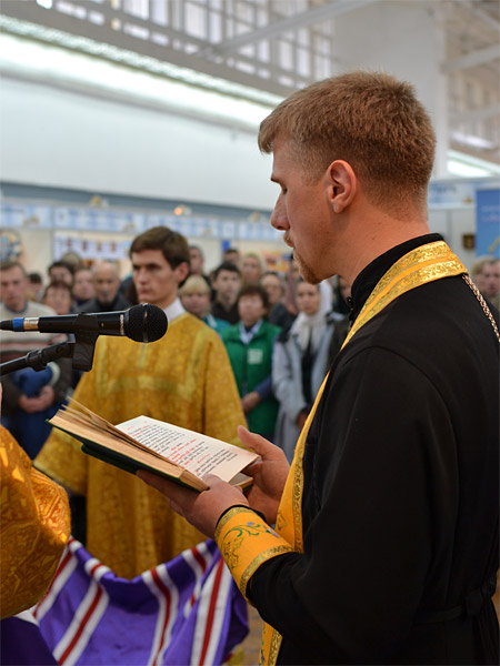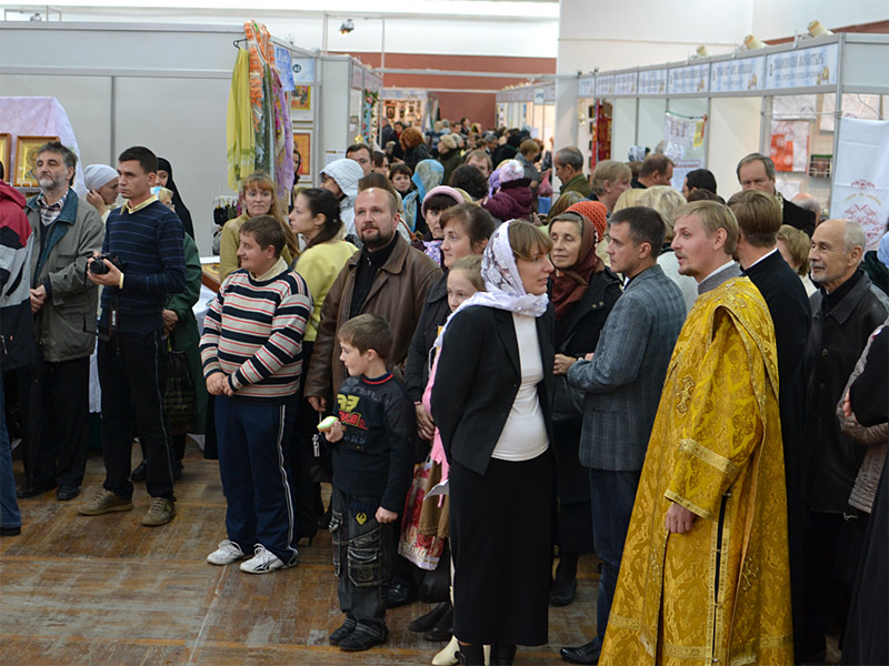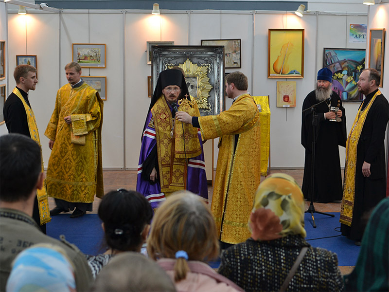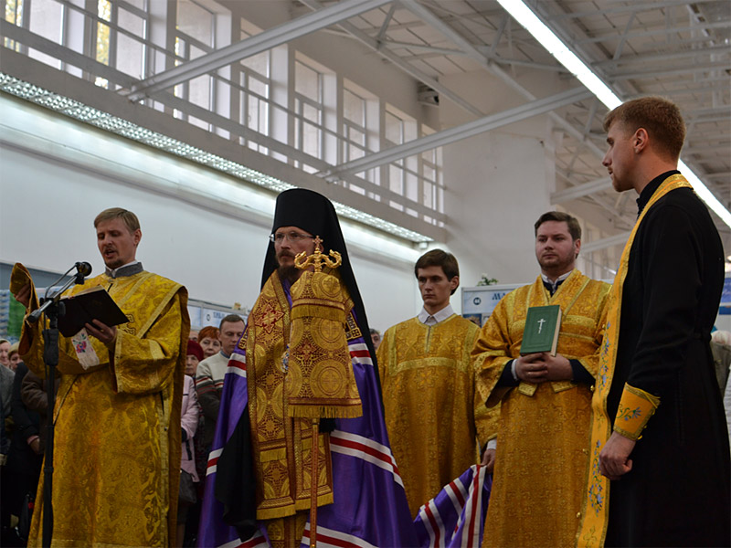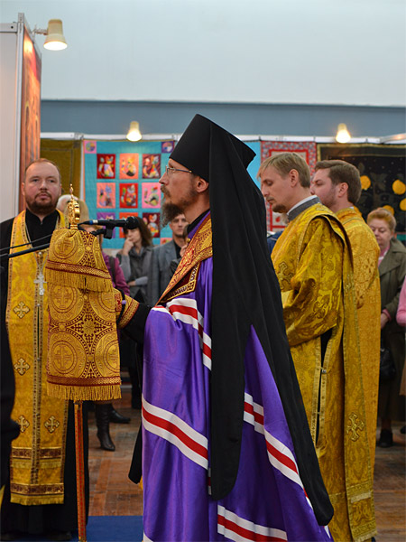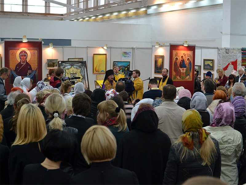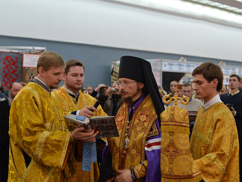 Пасля епіскапам Барысаўскім Веніямінам, вікарыем Мінскай епархіі быў адслужаны малебен на пачатак выставы. Уладыка Веніямін у свёй пропаведзі распавёў прысутным пра гісторыю свята Пакрова Прасвятой Багародзіцы, а таксама адзначыў, што Прысвятая Дзева заўсёды пакрывае людзей, сям'ю, сваёй найвялікшай дапамогай.