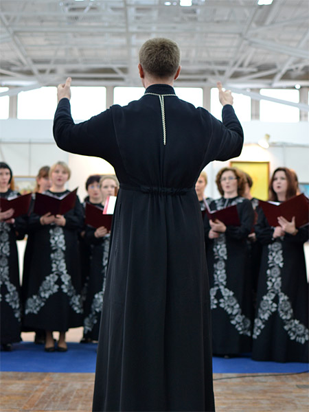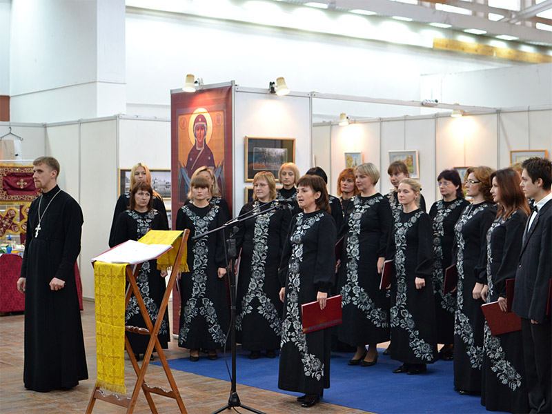 Перад адкрыццём выставы хор выкладчыкаў дзіцячай музычнай школы г.Барысава пад кіраваннем клірыка храма Ражджаства Хрыстова айца Сергія Пракопчыка праспяваў захапляльную праграму духоўных спеваў, якая прысвячалася надыходзячаму святу Пакрова Прасвятой Багародзіцы. З хорам спяваў і саліраваў дыякан Свята-Ўваскрасенскага кафедральнага сабора Міхаіл Сідараў.