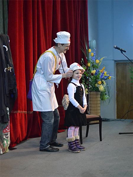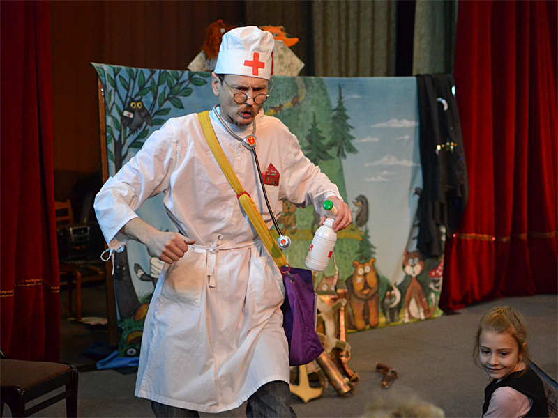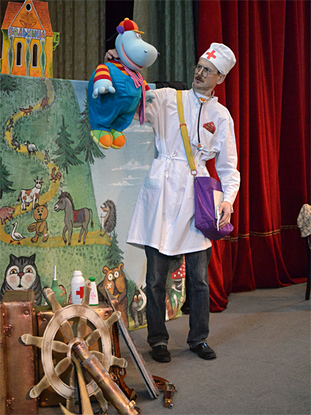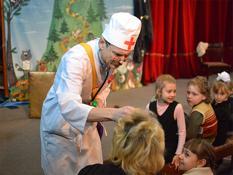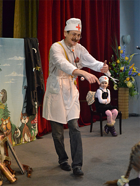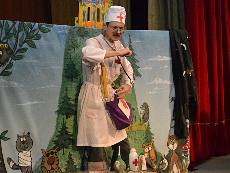 Маляваныч сыграл спектакль по давно всем любимой и знакомой сказке «Айболит». Радости у юных зрителей не было предела, все веселились, и радостно аплодировали актеру.