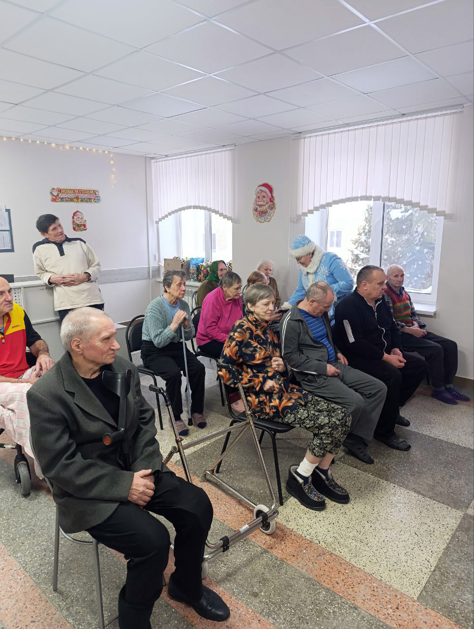 Во время визита пациенты услышали краткое назидательное слово о значении Рождества Христова, тропарь праздника, а также рождественские песнопения в исполнении Деда Мороза и Снегурочки, что создало особую атмосферу радости и тепла.