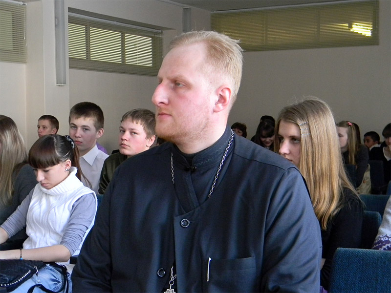 Она была посвящена такому деликатному вопросу, как взаимоотношения юношей и девушек. Незадолго до этой встречи старшеклассники побывали на выставке «Спасай взятых на смерть», поэтому узнать мнение священника и отношение Православной Церкви по данной проблеме было им весьма интересно и полезно.