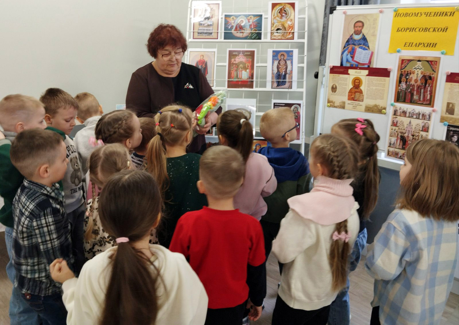 Экскурсия продолжилась в храме, где дети узнали о его устройстве, рассмотрели его убранство. Им рассказали о значении свечи, и они смогли поставить свечи с молитвой к Богу. Занятия с ребятами провела Валентина Шутко, помощник благочинного Борисовского городского церковного округа.
