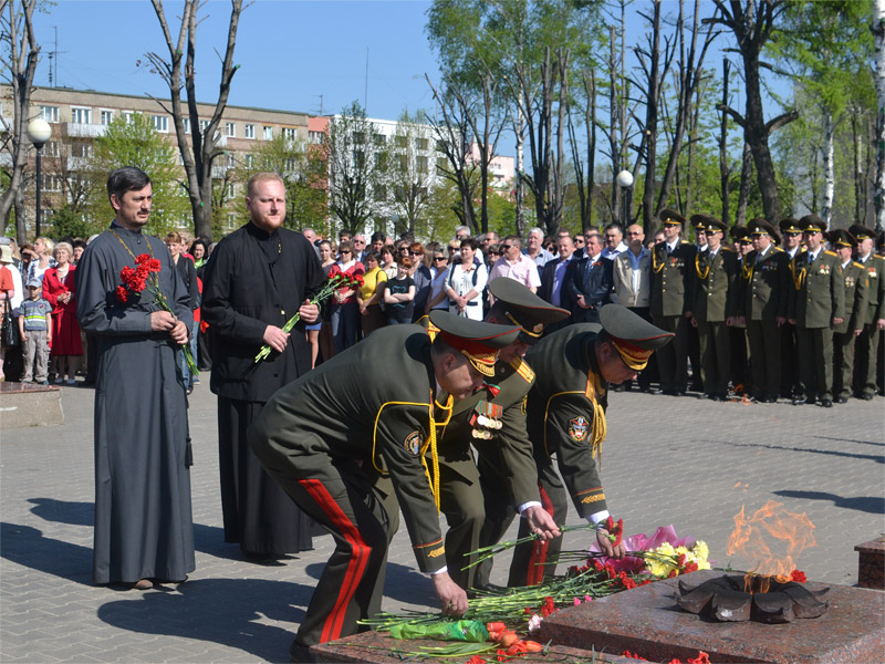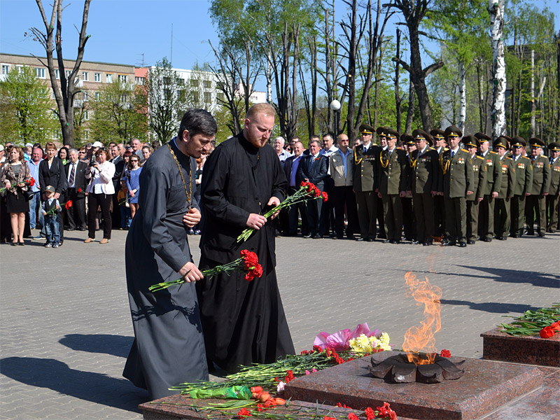 В сквере по улице Чапаева прошел митинг и возложение цветов к памятнику жертвам фашизма. Вместе с руководством Борисовского райисполкома, командованием Борисовского гарнизона, ветеранами Великой Отечественной войны, делегациями предприятий и организаций в возложении цветов к памятнику приняли участие благочинный Борисовского церковного округа, настоятель прихода храма Рождества Христова протоиерей Александр Вербило и настоятель прихода храма святого благоверного князя Димитрия Донского иерей Сергий Башкиров.