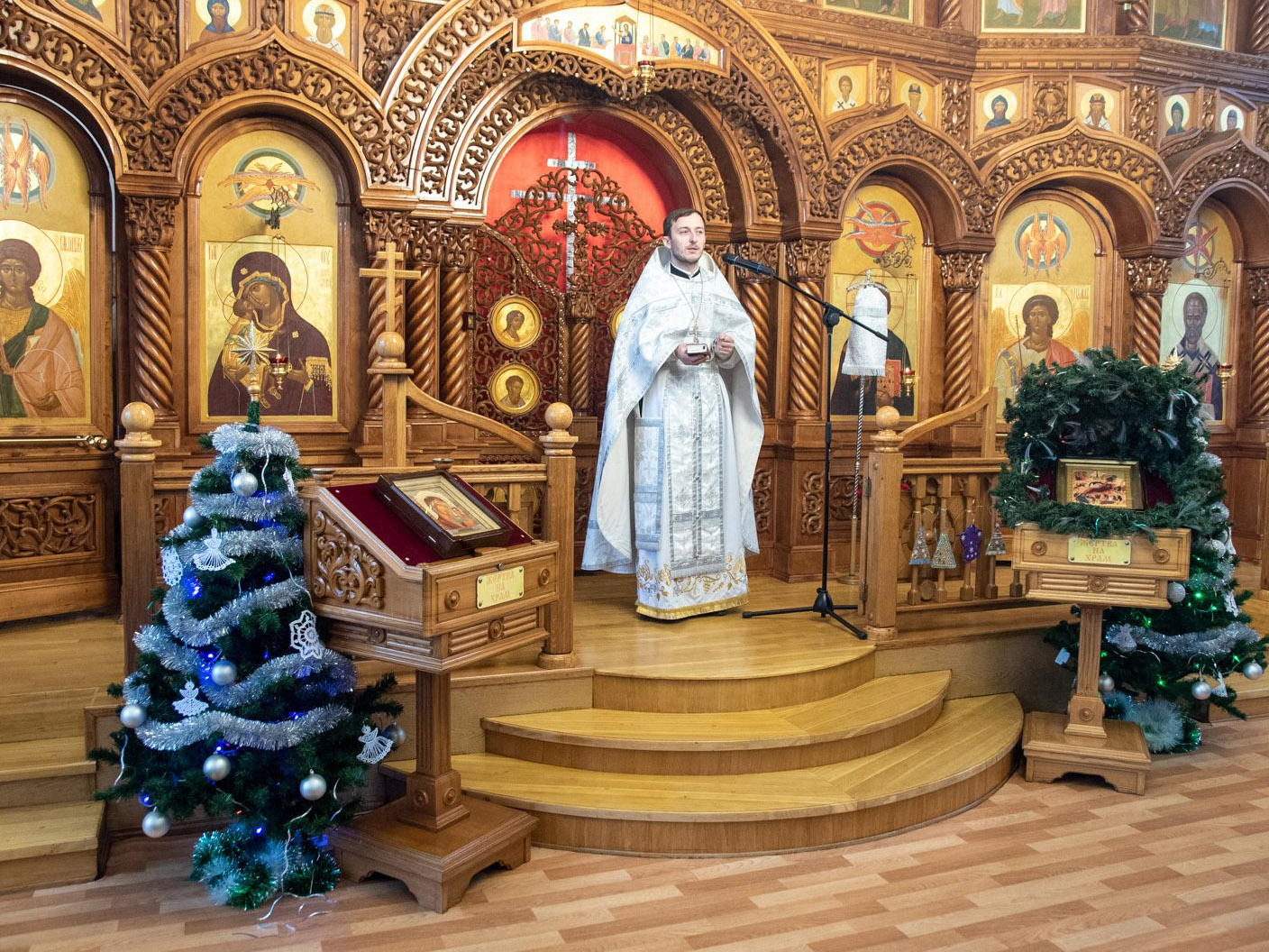 За богослужением были вознесены сугубые молитвенные прошения о даровании мира. Проповедь перед Причастием произнес клирик храма Рождества Христова иерей Артемий Щербицкий. По окончании богослужения митрополит Вениамин поздравил всех с Рождеством Христовым и обратился к пастве со словом назидания.