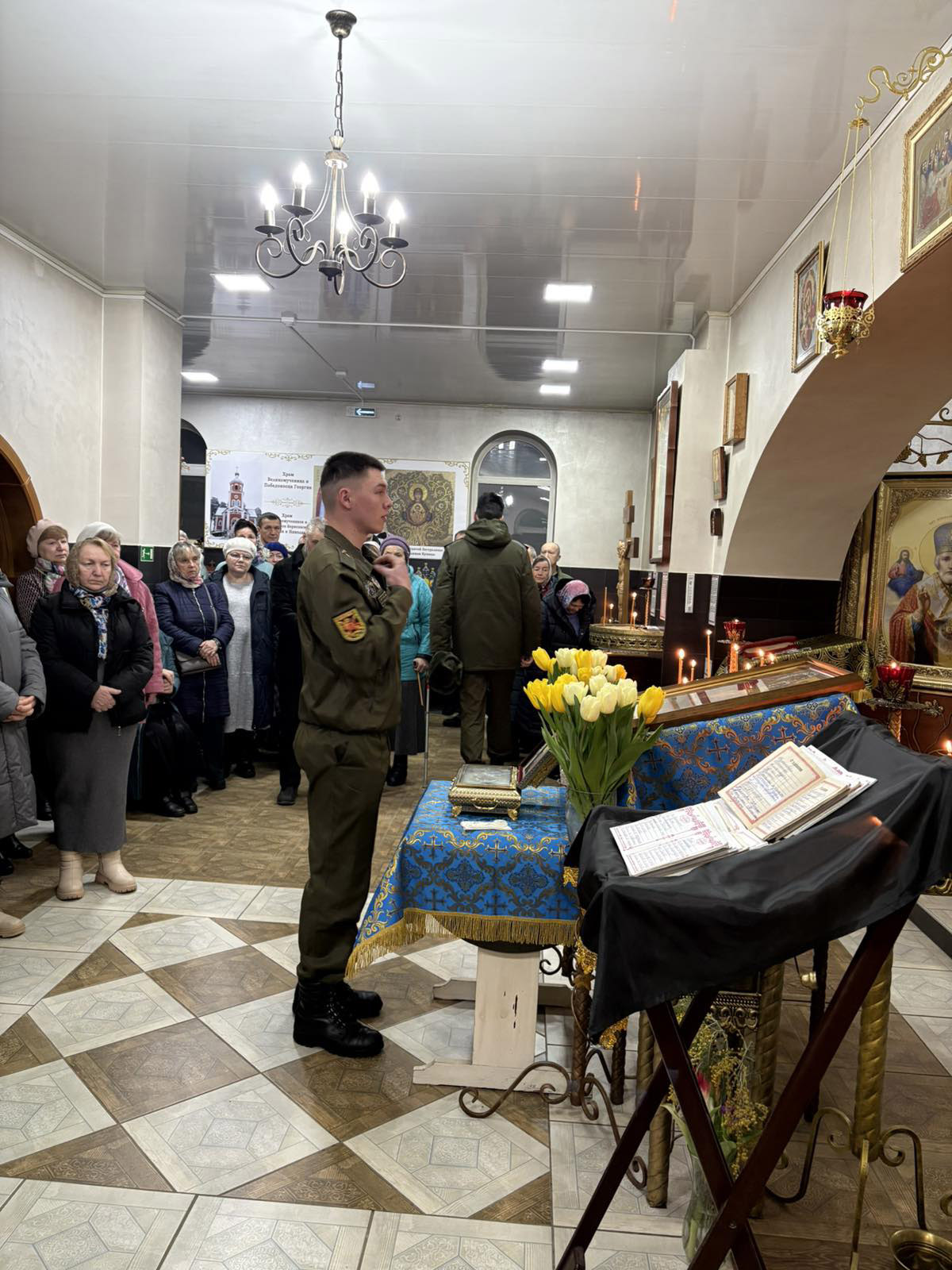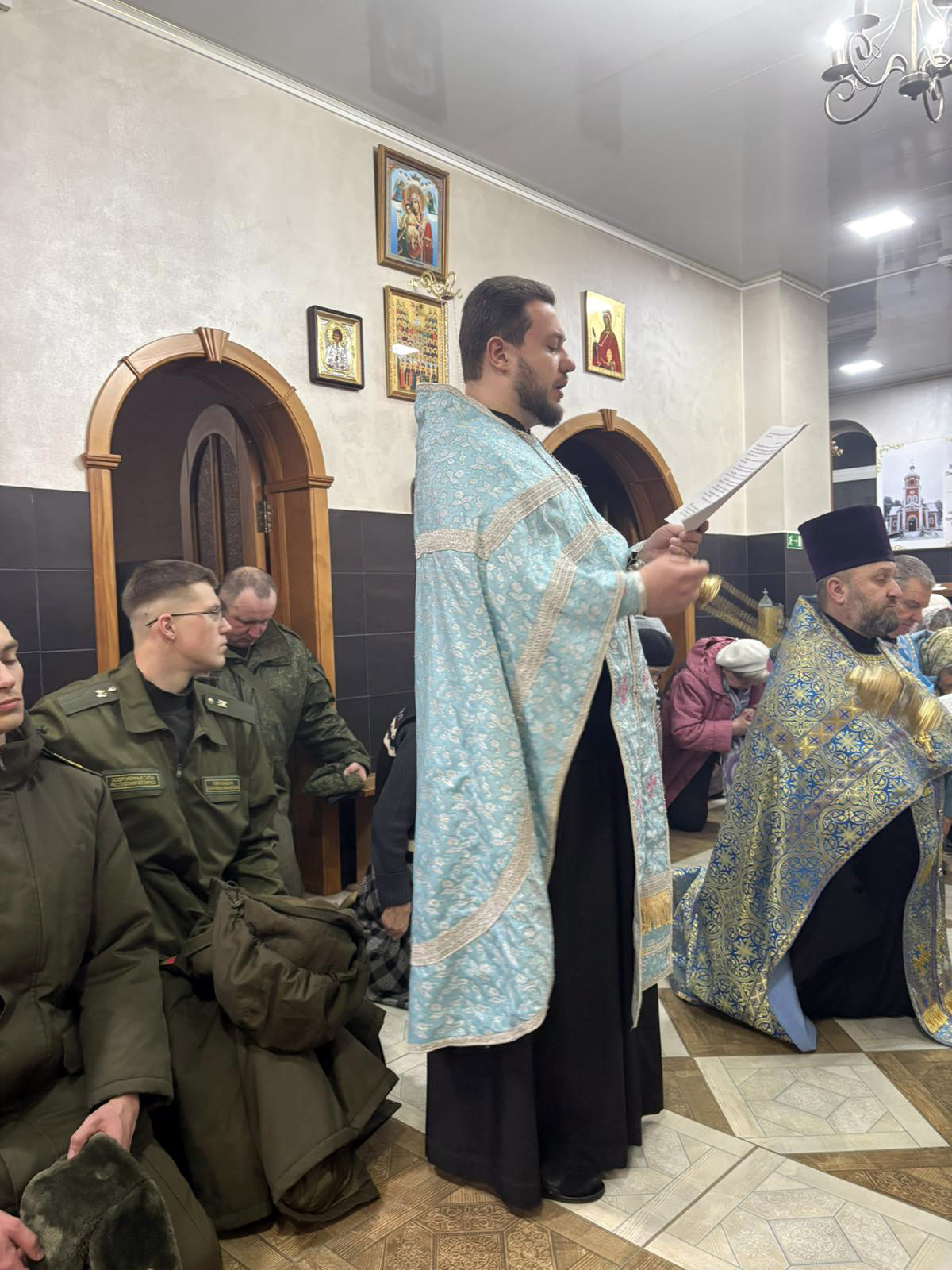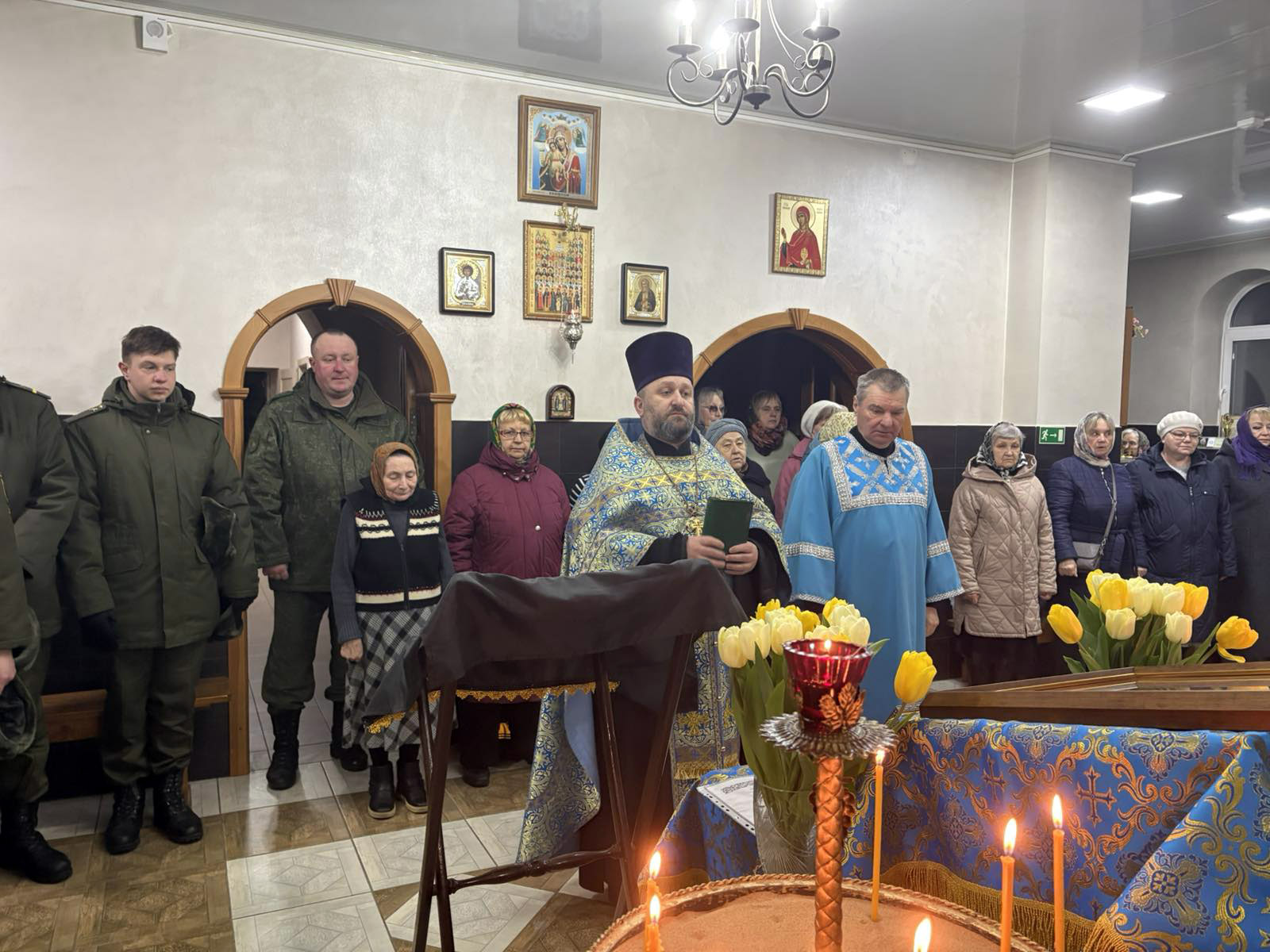 Настоятель прихода протоирей Иоанн Миронович вместе с клириком храма иереем Федором Малеевым отслужили молебен с акафистом Пресвятой Богородице. На молебне вместе с прихожанами о мире в нашем Отечестве и благополучии в семьях молились военнослужащие 310 группы артиллерии 120-й отдельной гвардейской механизированной военной бригады, работники 592 военного клинического центра, учителя и учащиеся ГУО «СШ 16 имени И.В. Борисюка». Пресвятая Богородица, спаси нас!