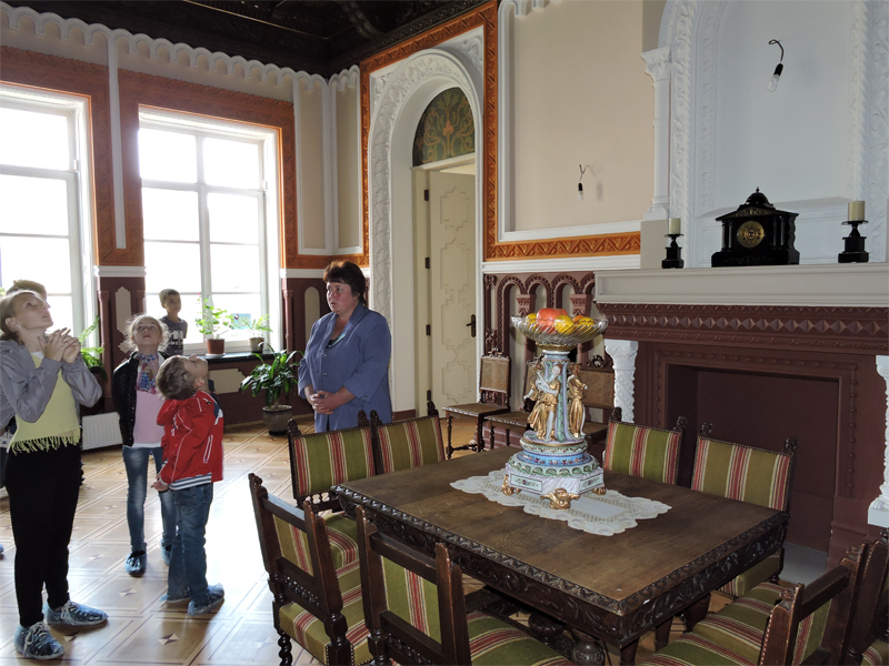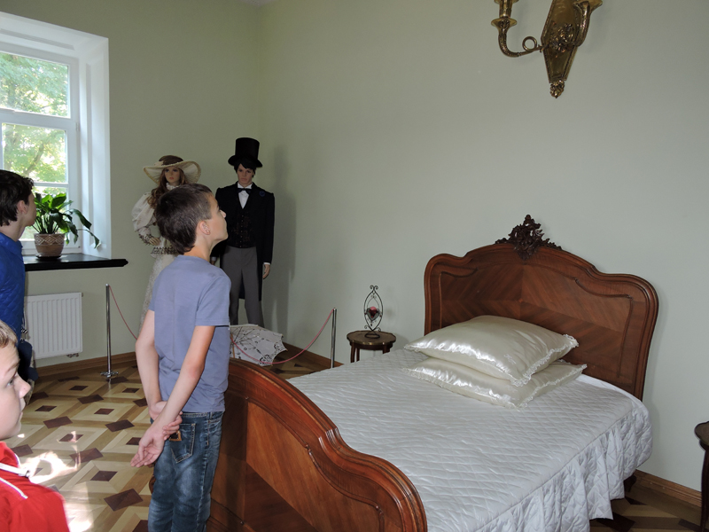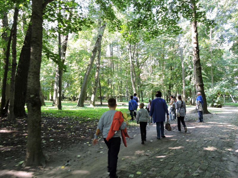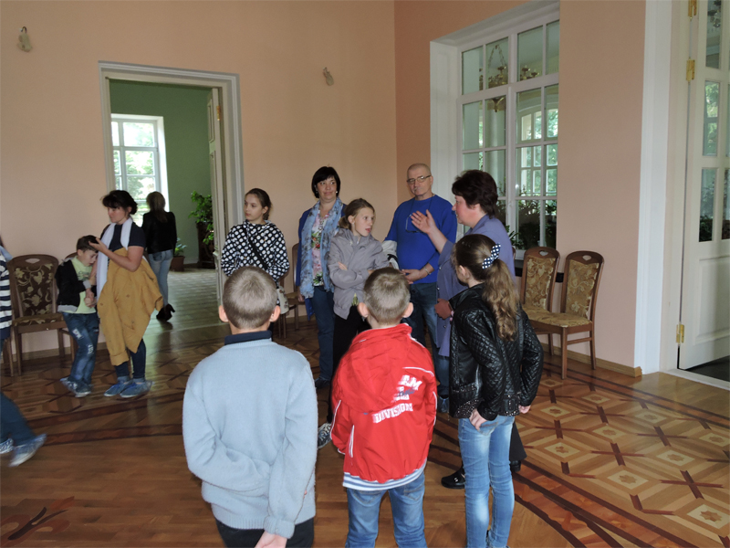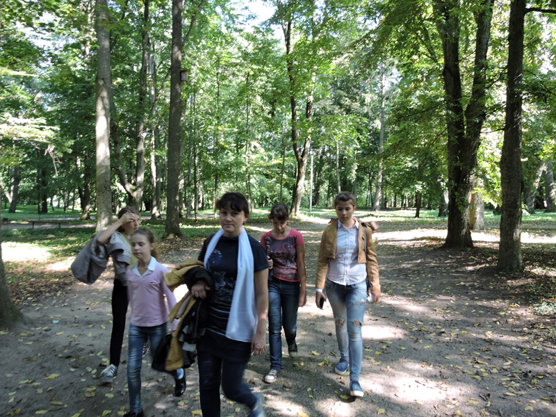 В д. Красный Берег также находится одна из жемчужин истории архитектуры Беларуси, входящая в туристический маршрут «Золотое кольцо Гомельщины» — усадебно-парковый комплекс 19 в. Козел-Поклевских, куда мы с ребятами с удовольствием заглянули. Великолепному зданию усадьбы 124 года, в некоторых комнатах пол и плитка, а также лестничные пролеты сохранились полностью. Украшением усадьбы является пейзажный (английский) парк на берегу реки Добосна. Тут растут дубы, клены, липы, граб, лиственница, тополь серебристый, ель. В прохладной тени парка мы гуляли и слушали удивительные истории о людях, традициях прошлого.