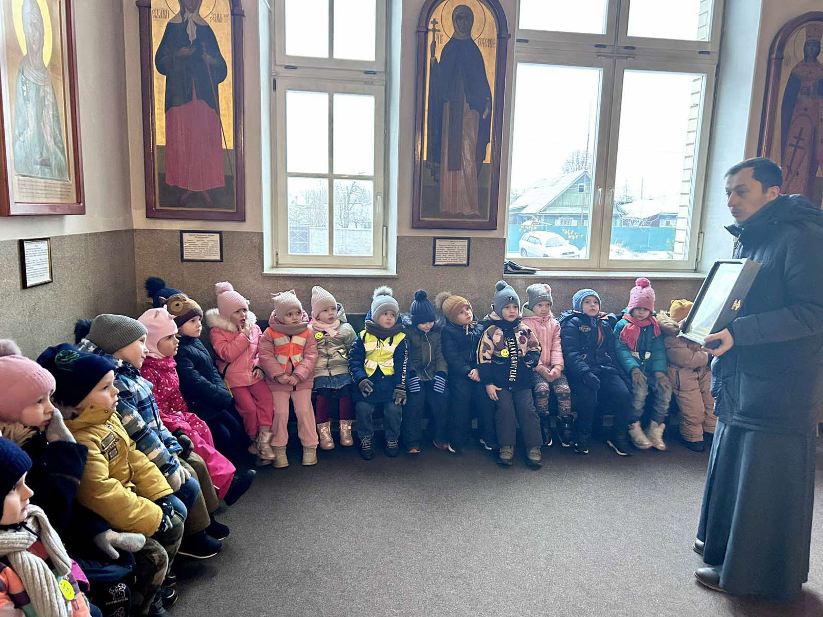 10 декабря воспитанники ГУ «Детский сад№ 44 г. Борисова» посетили храм Рождества Христова. Иерей Артемий Щербицкий провел экскурсию по храму и рассказал о подготовке к празднику Рождества Христова, которая может выражаться в молитве и делах милосердия.