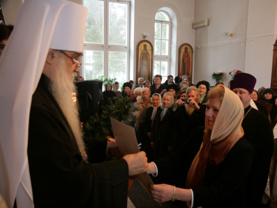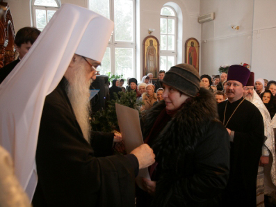 По окончании Божественной литургии Владыка Экзарх поздравил прихожан, всех жителей Борисова со светлым праздником Рождества Христова, пожелал им добра, здоровья, чистой веры , любви к нашему Спасителю и вручил награды Белорусской Православной Церкви. За труды во благо Святой Церкви, содействие в ее развитии и процветании, общественную деятельность по духовно – нравственному воспитанию и образованию борисовчан были награждены: медалью Святителя Кирилла Туровского - председатель Борисовского районного исполнительного комитета В.В.Миранович и первый заместитель председателя Борисовского районного исполнительного комитета В.И.Саковец, медалью Святой Преподобной Ефросинии Полоцкой - заместитель председателя Борисовского районного исполнительного комитета В.Н.Шутко, директор Центральной районной библиотеки им. И.Х Колодеева Г.М.Слесаренко, директор УП «Учебно – педагогический комплекс детский сад – средняя школа № 24» Н.А.Беликова, казначей храма Рождества Христова Т.Д. Орловская, Грамотой Патриаршего Экзарха – начальник отдела образования Борисовского районного исполнительного комитета Г.Н.Казак, начальник идеологического отдела Л.И.Горнак, директор городского Дворца культуры им. М. Горького Т.Л.Душкова, преподаватель воскресной школы Т.Л.Жеман. Присутствующему на богослужении заместителю председателя Минского областного комитета В.В. Щетько Владыко подарил икону Божьей Матери.