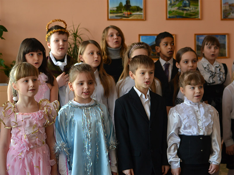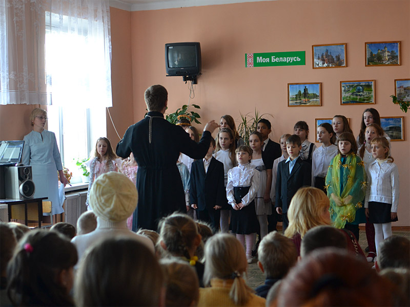Учащиеся воскресной школы храма Рождества Христова выступили в средней школе д. Зембин с праздничным концертом.