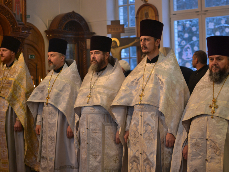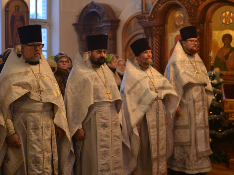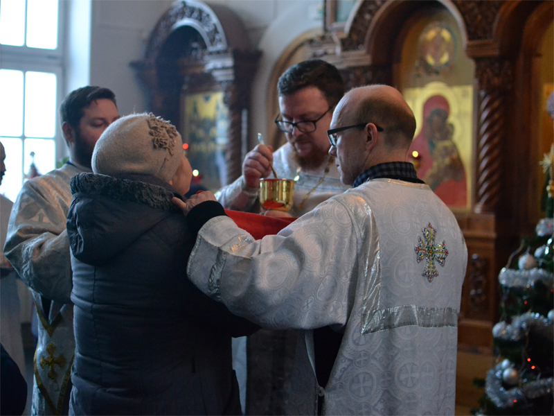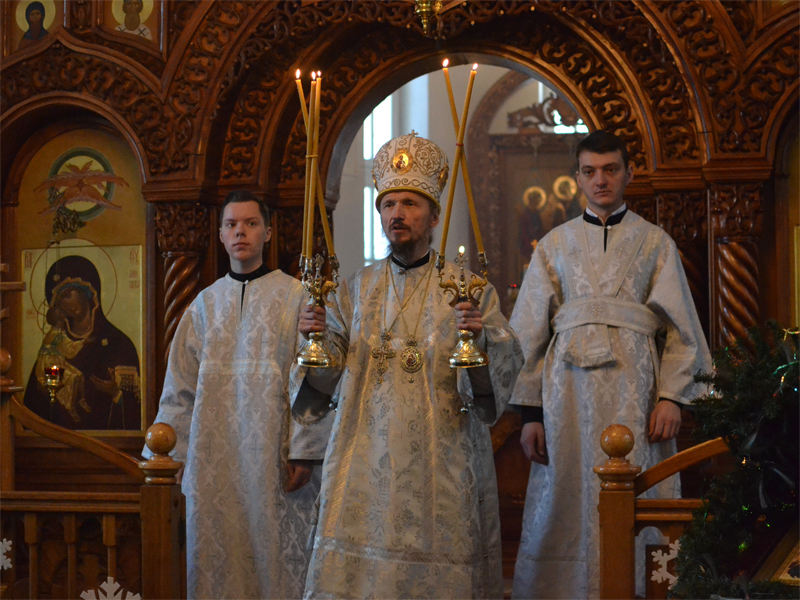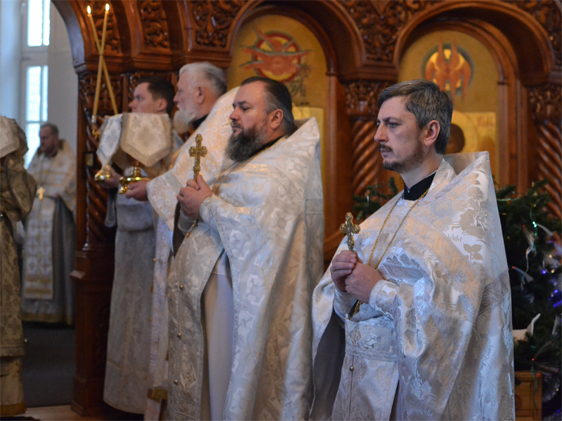 Преосвященнейшему Вениамину сослужили: секретарь Борисовского епархиального управления, настоятель храма в честь святого Архистратига Михаила аг. Зембин протоиерей Андрей Капульцевич; благочинный 1-го Борисовского церковного округа, настоятель Христорождественского прихода в г. Борисове протоиерей Александр Вербило; благочинные церковных округов Борисовской епархии, а также клирики Борисовских благочиний. Дьяконский чин возглавил клирик храма Рождества Христова протодиакон Сергий Керко. Песнопения Литургии совершил приходской хор под управлением регента Елены Вербило. В сугубую ектению были включены молитвенные прошения о сохранении единства Православия. По сугубой ектении епископ Вениамин вознес молитву о мире в Украине. По заамвонной молитве архипастырь и сослужащие священнослужители совершили славление Рождеству Христову. Затем владыка Вениамин поздравил паству с наступающим праздником и обратился ко всем присутствующим со словом назидания. Преосвященнейший владыка поздравил причастников с принятием Святых Христовых Таин и преподал всем архипастырское благословение.