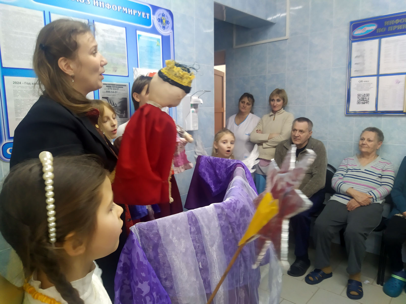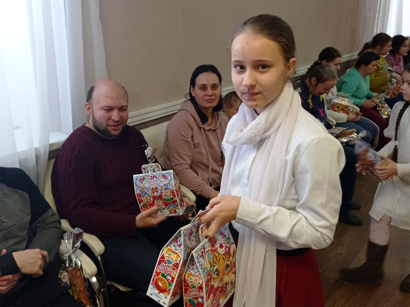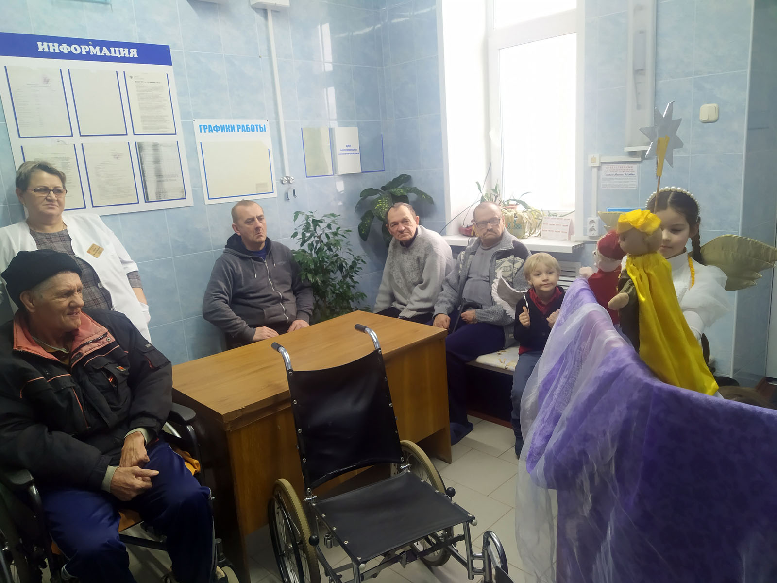 Далее путь предстоял в деревню Холхолица, в больницу сестринского ухода, где маленькие артисты показали праздничное представление и вручили именные подарки собранные прихожанами Свято-Воскресенского собора всем проживающим. Представление проходило в теплой, душевной обстановке. Атмосфера праздника окутала всех присутствующих.
