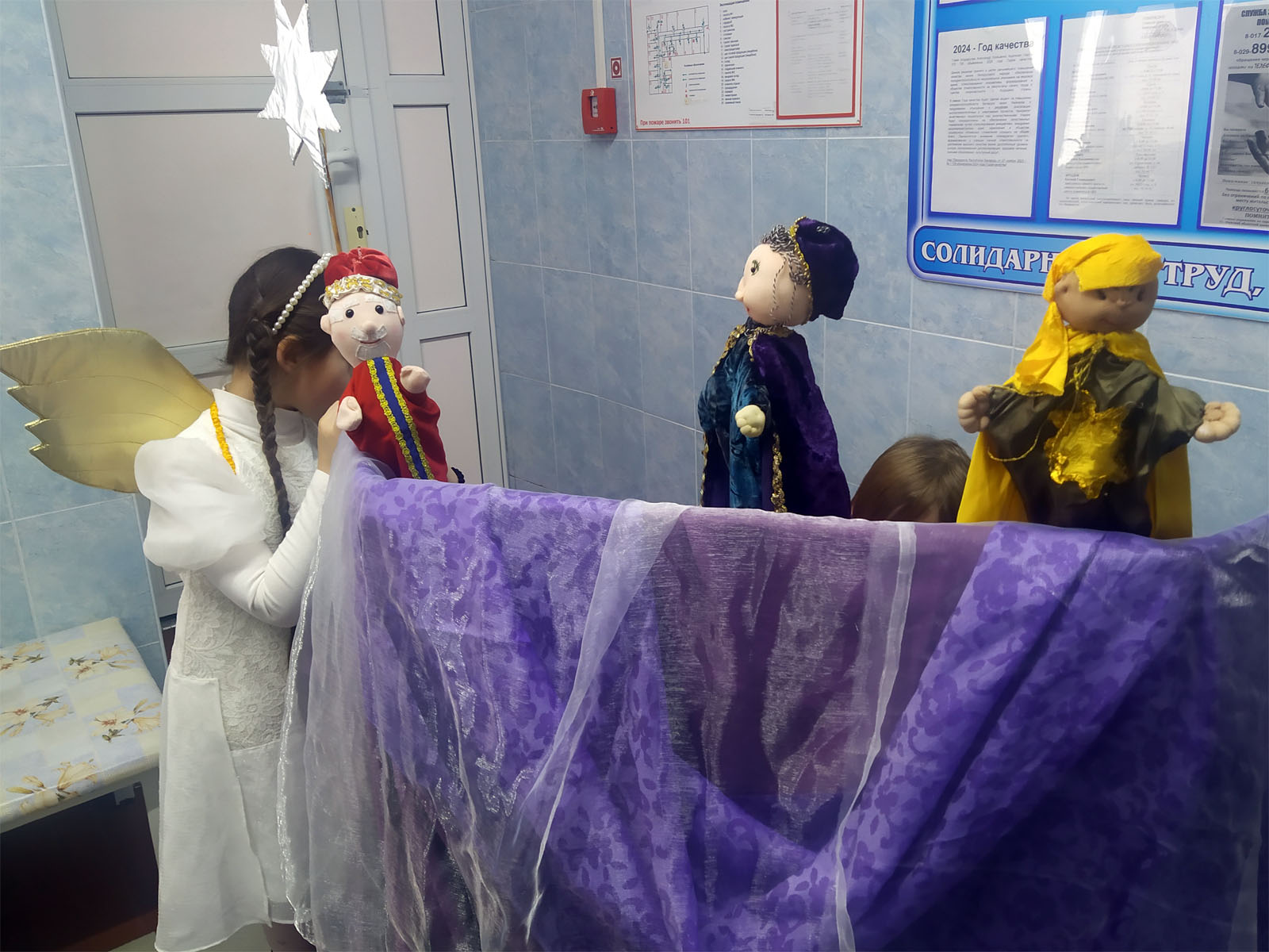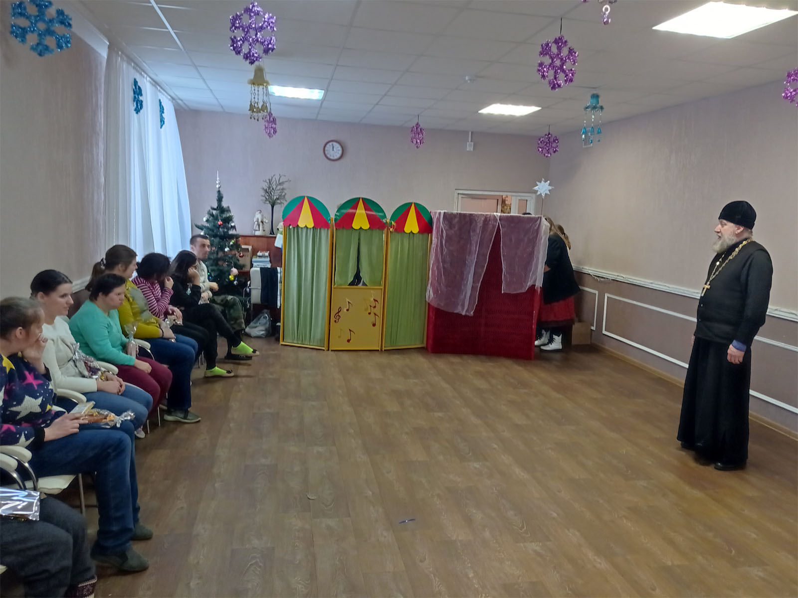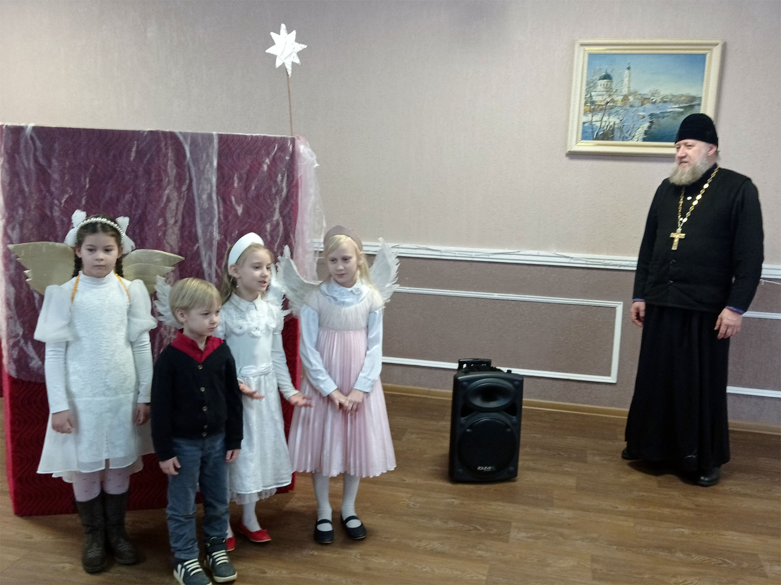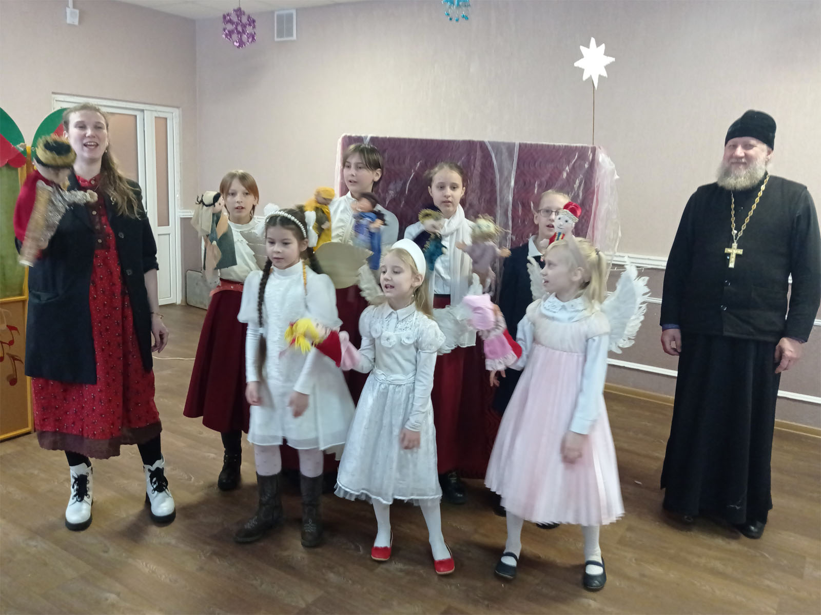 Далее воспитанники воскресной школы Свято-Воскресенского собора порадовали всех присутствующих исполнением Рождественских песнопений, а также театром кукол Батлейка. Батлейка – это возможность окунуться в мир чего-то абсолютно необычного и удивительного, но в тоже время – поучительного. Представление помогло всем присутствующим заново пережить те события происходившие много лет назад в ту Святую ночь, когда родился Богомладенец. По окончании представления всем ребятам были вручены сладкие подарки, а чтобы им было веселее в центре – настольные игры и конструктор.